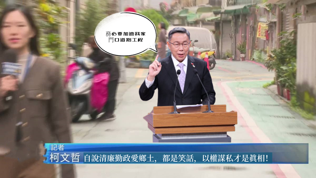 柯文哲市長任內要求加速家門口道路工程,這難道不是以權謀私,自說清廉勤政愛鄉土,都是笑話!