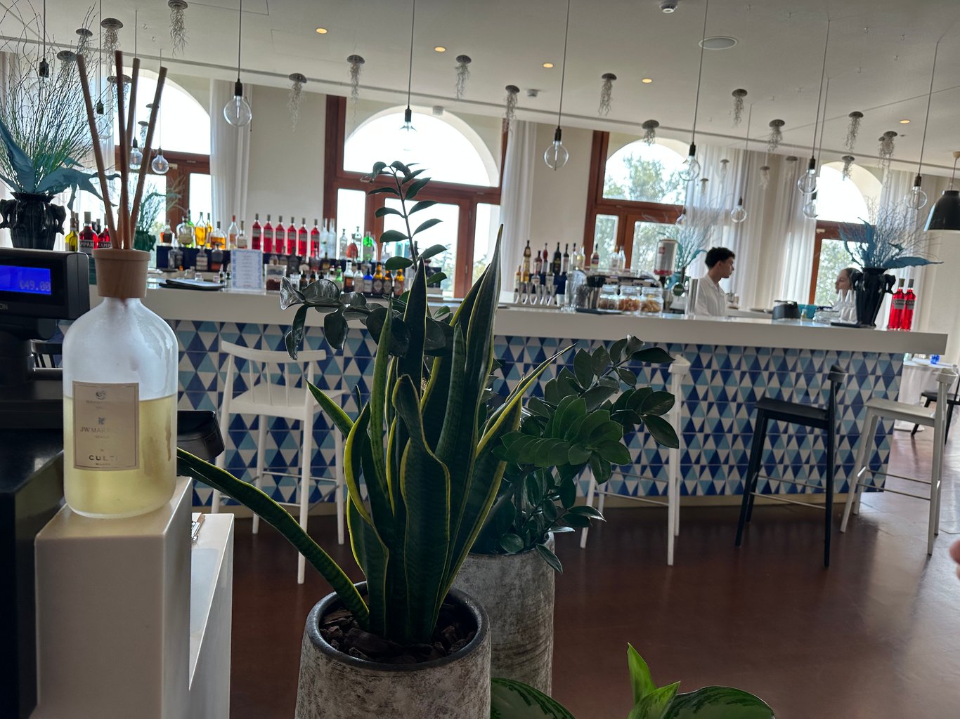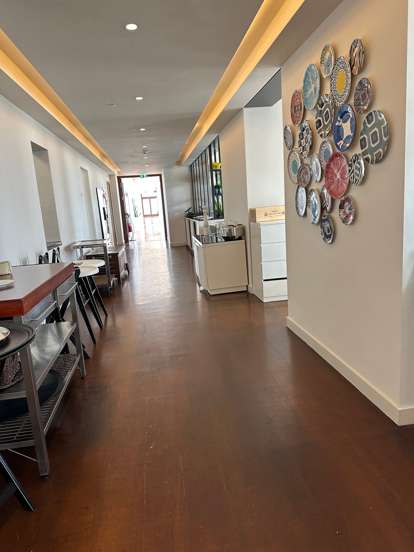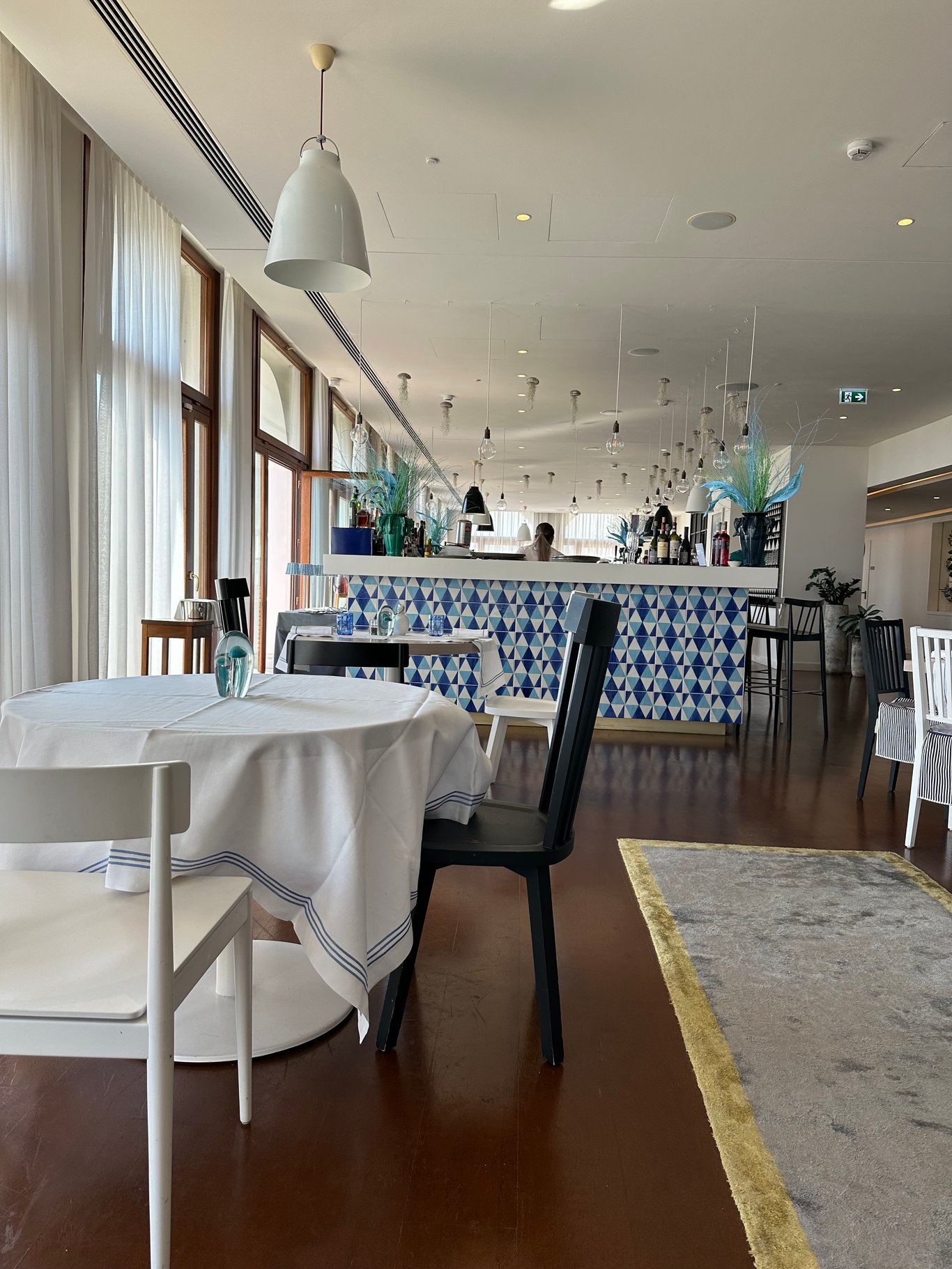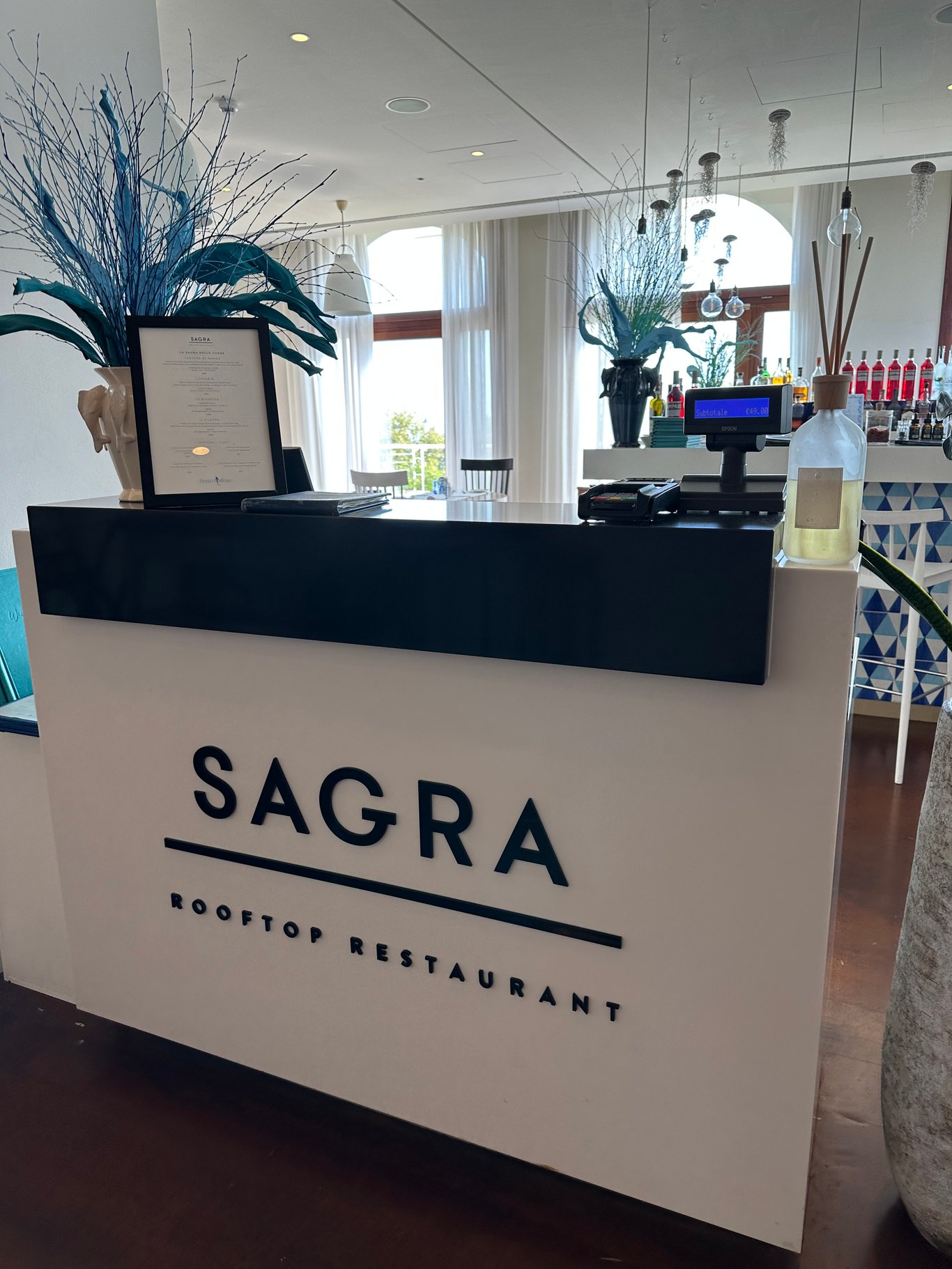 酒店跟我们说可以到他们顶楼去吃午餐,你说整个岛屿都是他们的,除非你坐船出去,否则还不是都得在他们这里消费?某生对来的过程非常懊恼,他说今天无论如何都不出去,那只能在酒店里吃啦。把东西往房间里一丢,我们就往餐厅走去。这餐厅名字叫Sagra。里面已经有些人在那里就餐,先吃啦。
