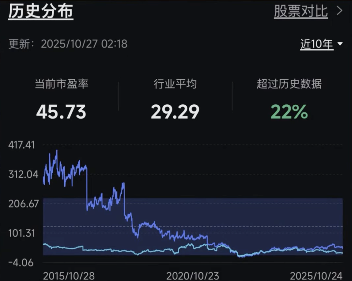 其次從公司估值也可以看出,目前網飛的估值僅僅只超過10年來,歷史數據的22%,處在一個非常低的估值水平,估值曲線幾乎已經在歷史估值的最低點。