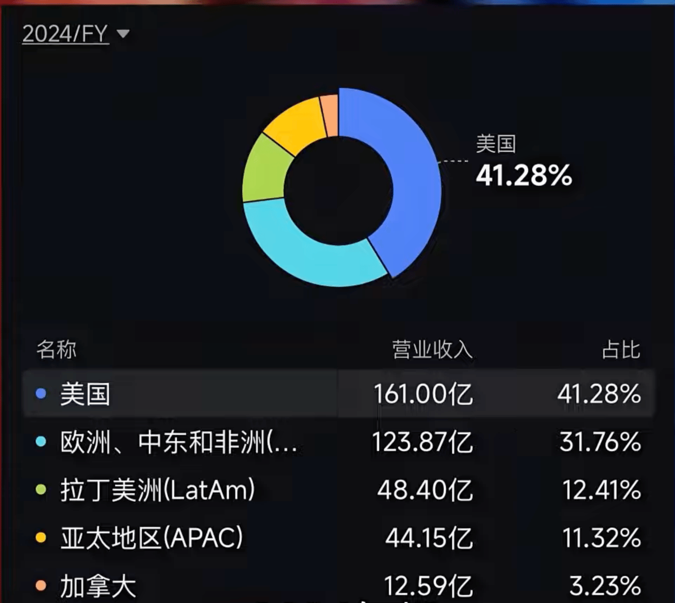 從業務地區分佈上,可以看出網飛基本上已經實現了全球化,2024年報,美國地區營收161億美金,佔比41%;歐洲、中東和非洲,營收123億美金,佔比31%;拉丁美洲營收48億美金,佔比12%;亞太營收44億美金,佔比11%;其他地區都是小佔比。
