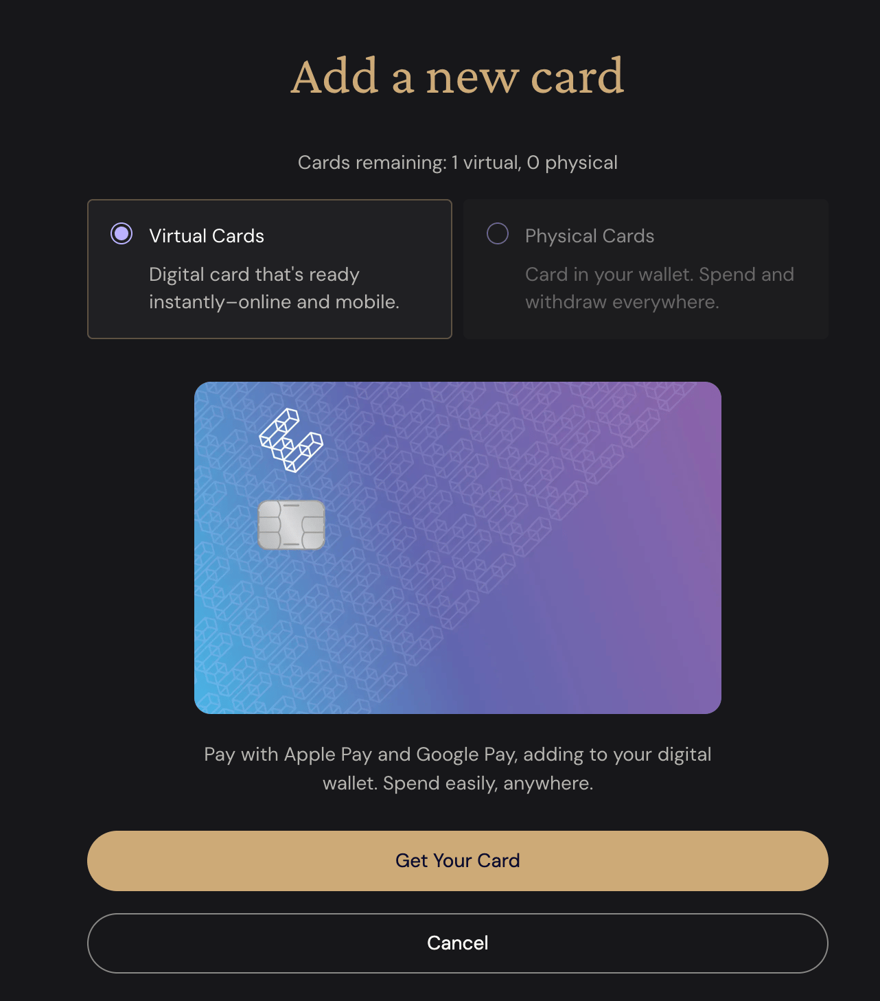 卡片這邊,找到類似「Add a new card」的選項,建立你的第一張虛擬卡。關於姓名這件事,理論上可以用網名,但有些國外店家會要求卡片上的名字和護照一致。好在可以申請多張虛擬卡,不同用途分開用,各自安好。