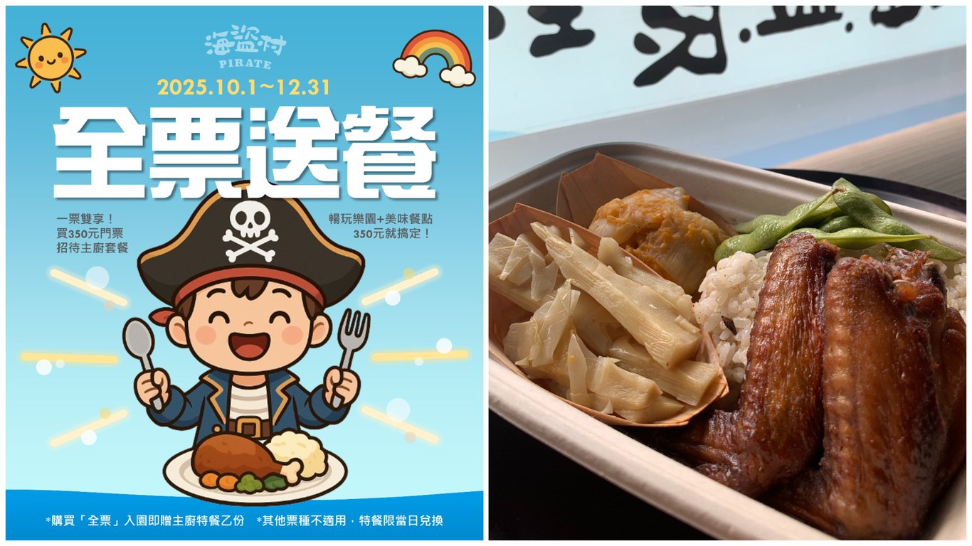 為迎接年末連假與節慶氣氛,海盜村特近期別推出全新優惠活動——即日起至12月底止,凡購買全票入園,即可免費獲得「主廚特餐」乙份!讓旅客在玩樂之餘也能補充滿滿能量,享受美味又滿足的時光。「一票雙享」活動不僅超值划算,更從光輝十月的國慶喜悅、感恩節的溫暖團聚,一路延續到聖誕節的浪漫驚喜,陪你與家人、好友共享秋冬假期的幸福滋味,玩得開心、吃得盡興!