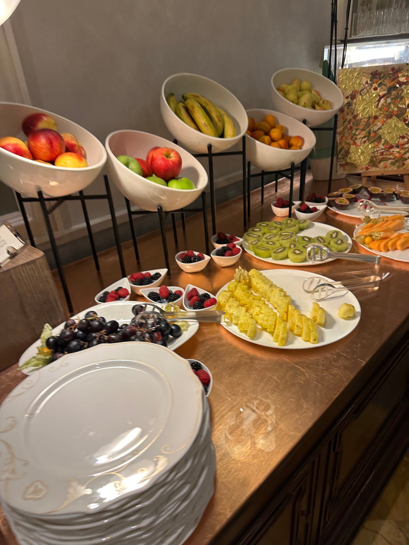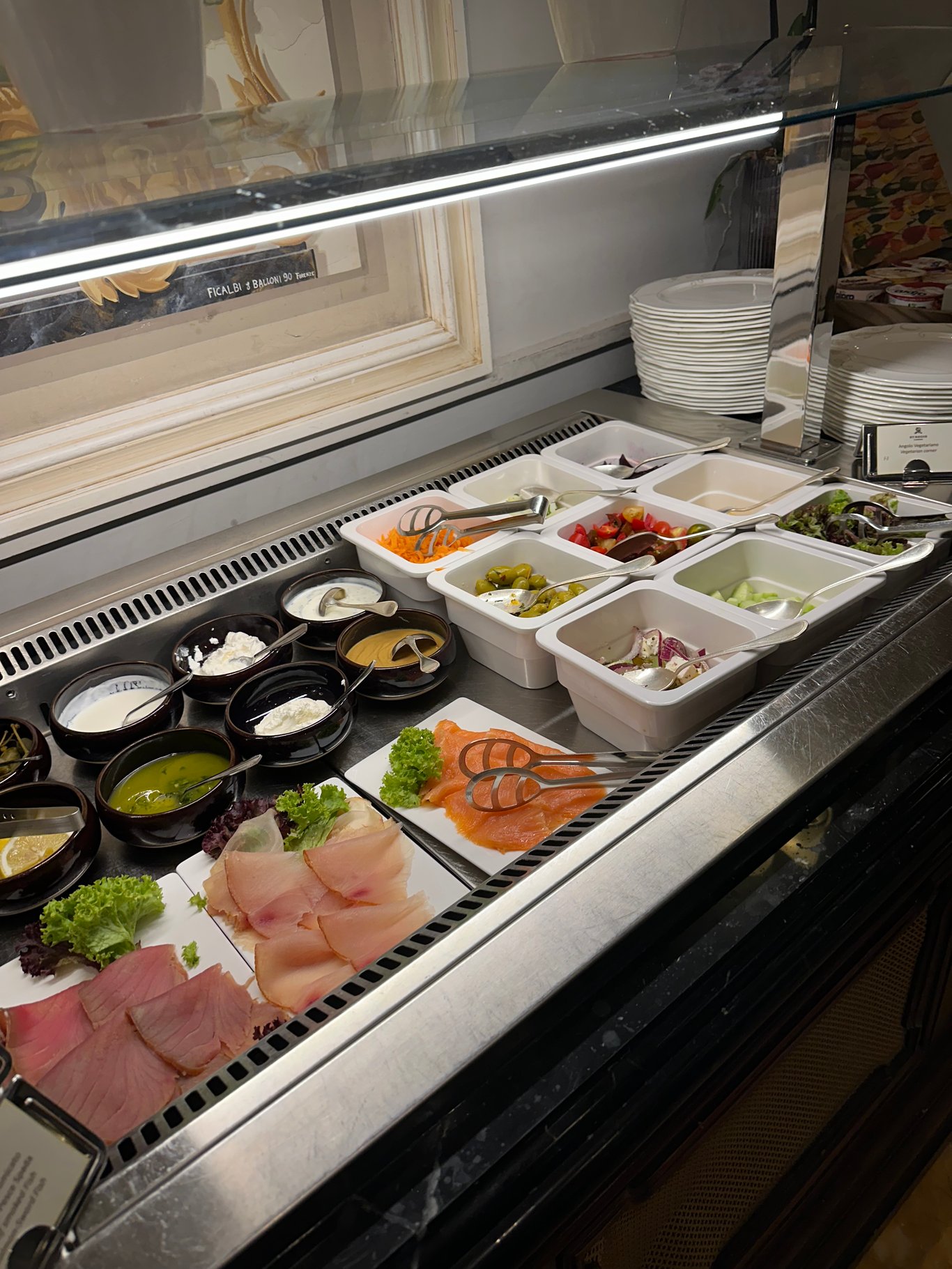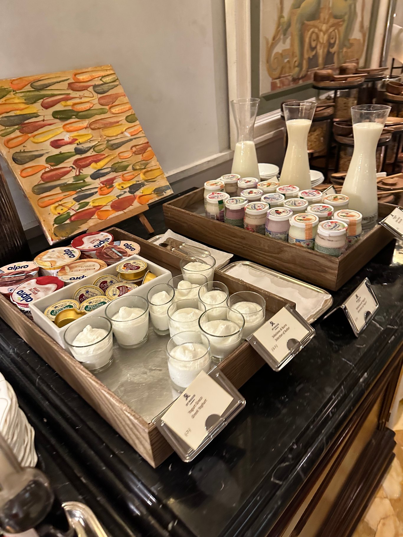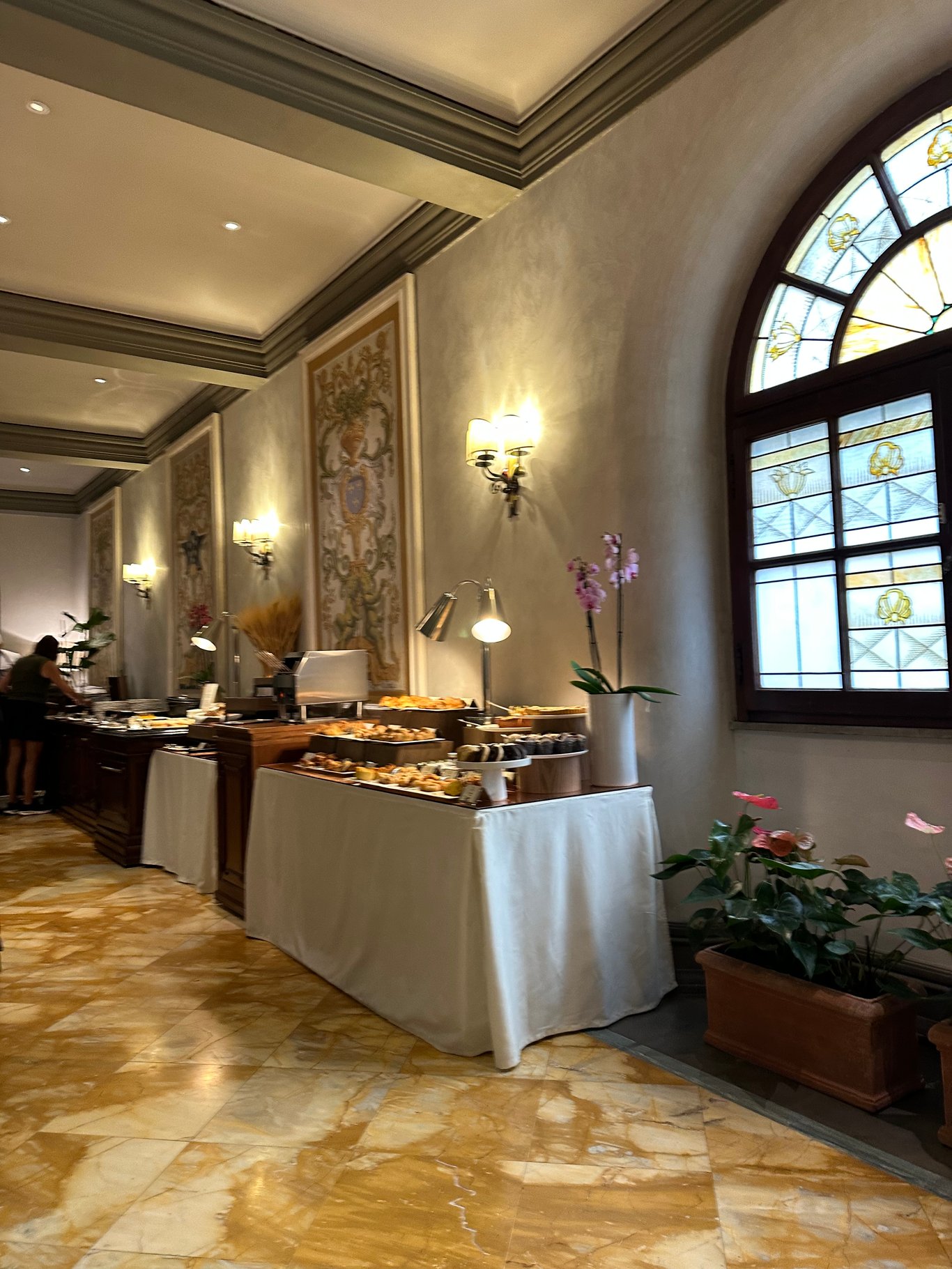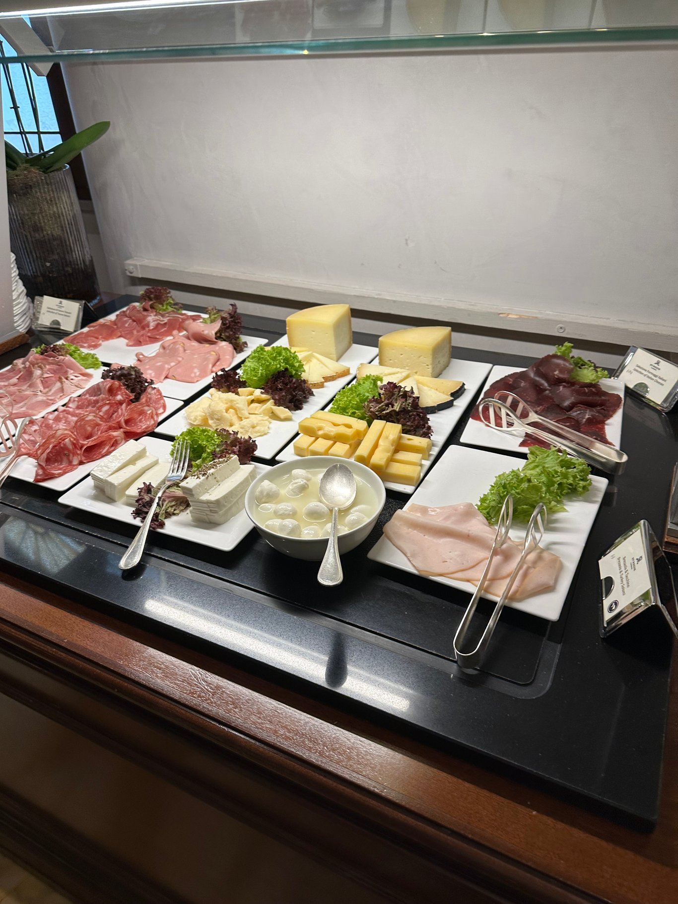 因为到的早,我们总是被带到离食物最近的位置坐下。这里你要点煎蛋和咖啡的话也是经过服务生来额外服务。早餐有单点也有自助。因为我们的房价里有包含早餐,看到那么丰盛的早餐自助选择,自然是直接选择自助啦。不过即便要额外单点也没关系。
