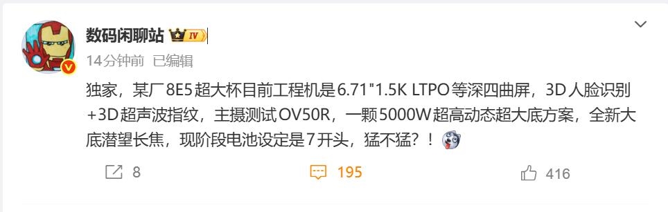 核心性能方面,新机将搭载高通第五代骁龙8至尊版移动平台,为影像处理及AI功能提供顶级算力支持。