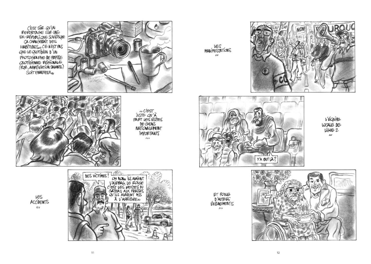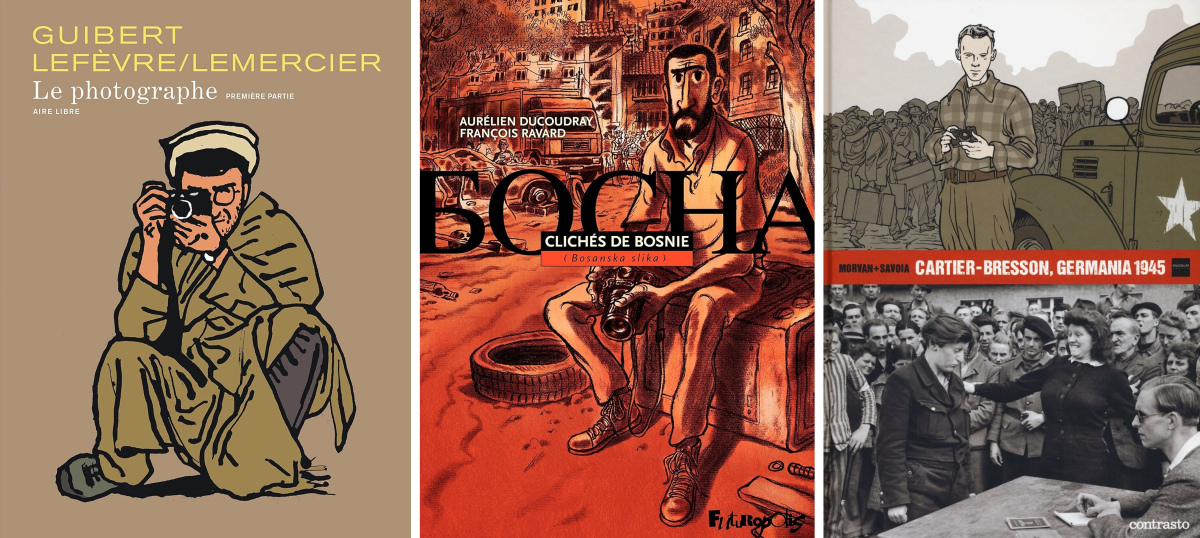 第一本是Emmanuel Guibert的《攝影師》(Le Photographe, 初版2003-2006,分三冊發行),講述一位自由攝影師,在1986年和無國界醫師組織前往阿富汗和巴基斯坦交界,待了3年,拍了數千張照片,但最後回到法國,只有6張照片成功登上《解放報》。10年後,這個攝影師遇到了Guibert,漫畫家就提出一個建議:畫一部漫畫,並使用當時沒有用到的照片,去闡述他當年的經歷。