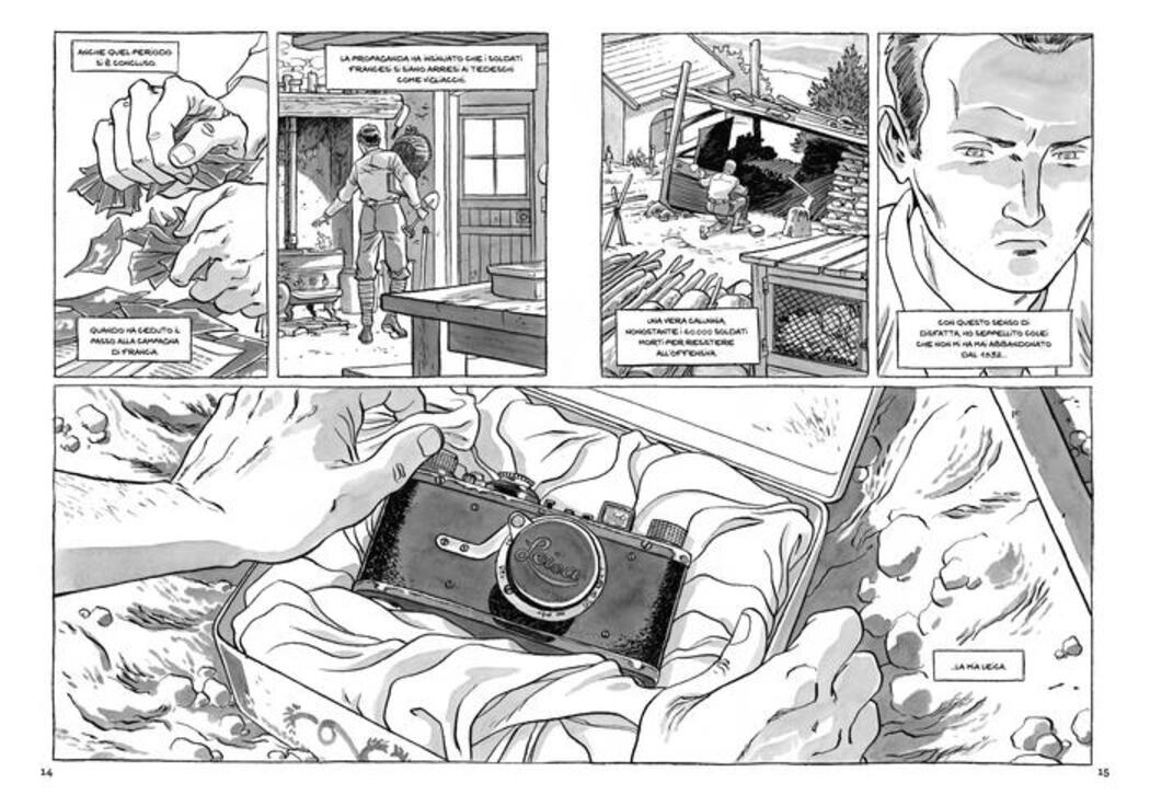 《布列松,德國1945》故事一開始,布列松把自己的徠卡相機埋起來,直到故事最後才挖出來。布列松曾被遣送到集中營,後來他回到德國拍攝戰後種種。漫畫家希望去重現這段時間的故事,因為這個時期,沒有留下任何照片紀錄。