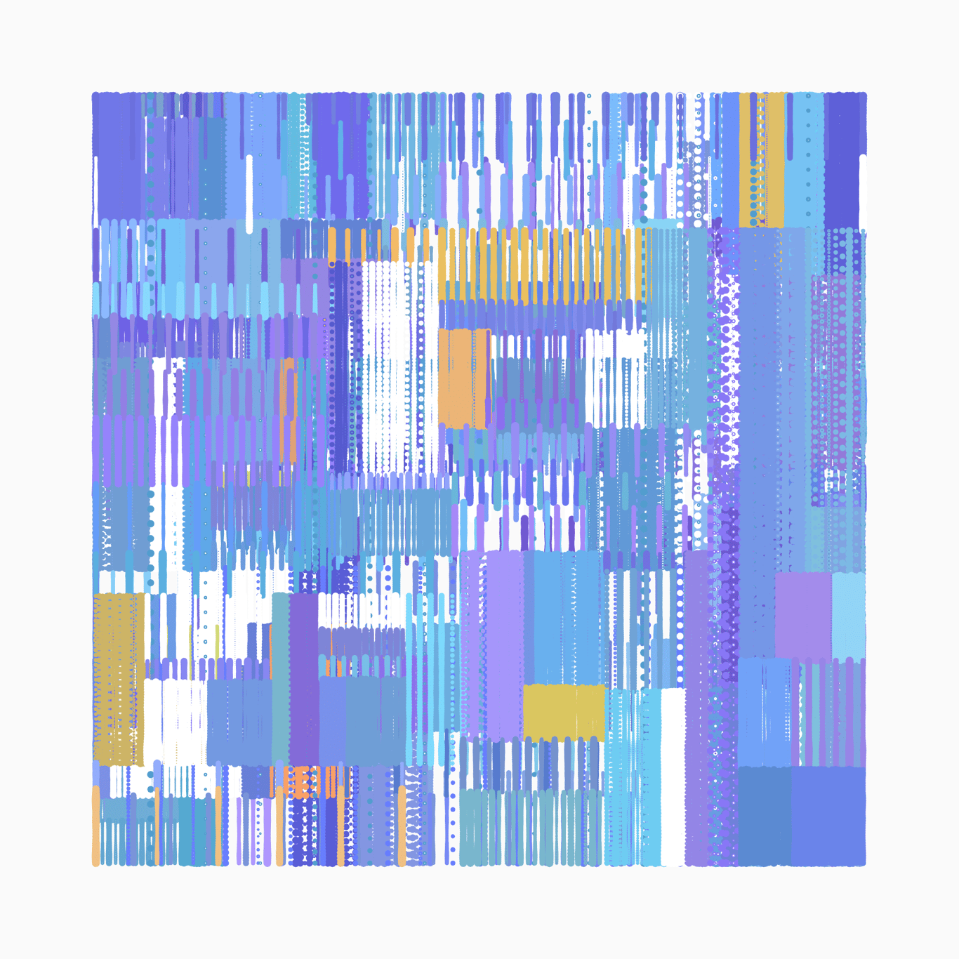 作品練習六是毛毛地毯,透過毛毛密碼與區塊分割的結合,疊加多層毛毛質感,創作出這件毛毛地毯。