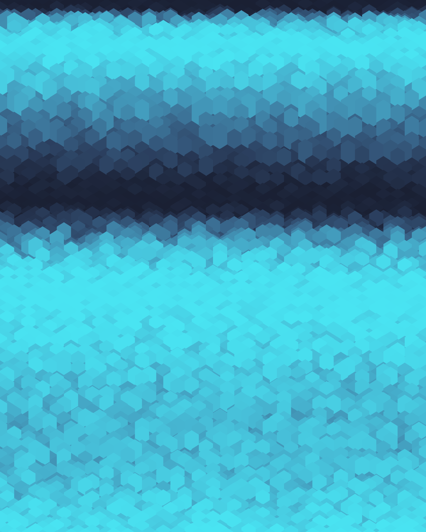 作品練習十是一件動態立體的延伸,透過將波形的起點放置在畫面下方,以及配色的調整,打造海浪般的效果。