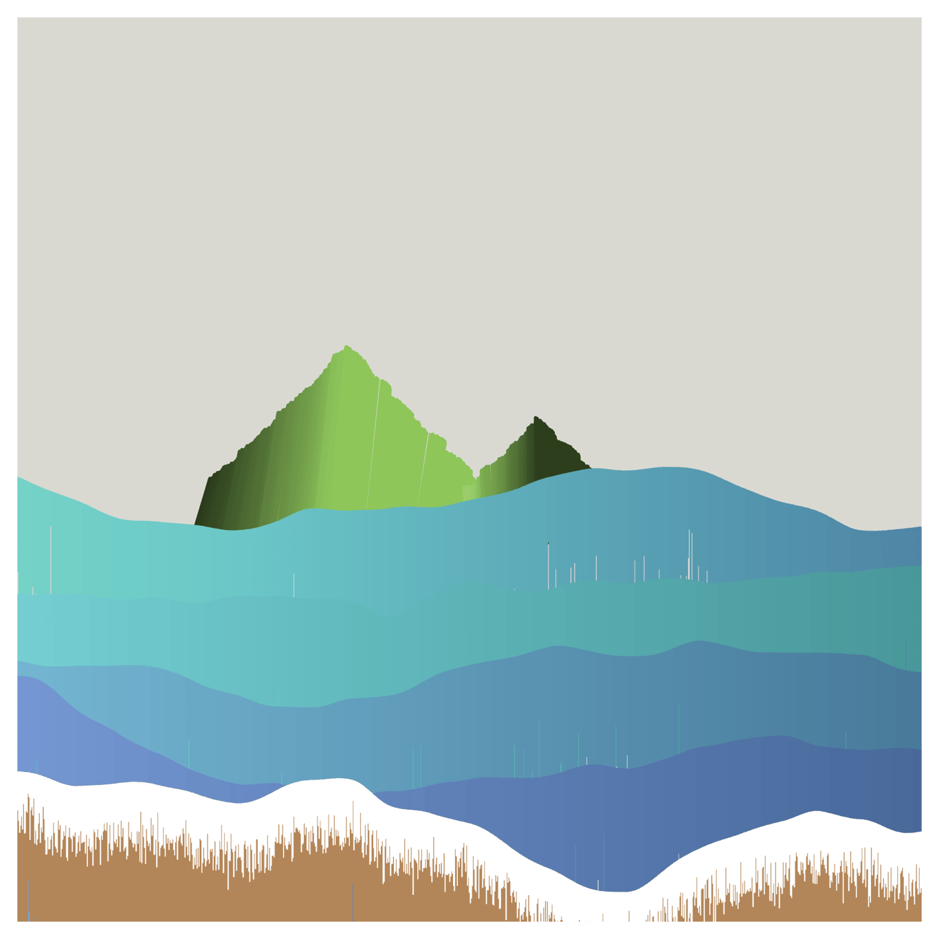 作品練習四是一件山巒的靜態圖片,透過 Noise 的方式創造有規律的線條。