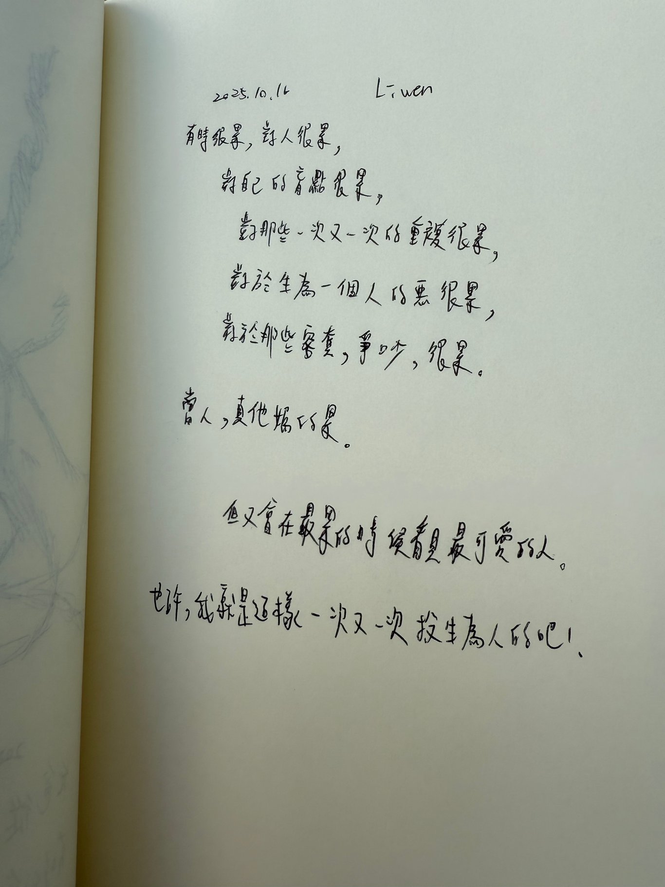 對於自己的無能為力感到很抱歉,對於自己的狂妄感到抱歉,對於自己的後悔感到抱歉,對於自己的過錯無法原諒,是啊,人很渺小很脆弱,因為一點點失誤都會讓我們覺得自己很沒用。