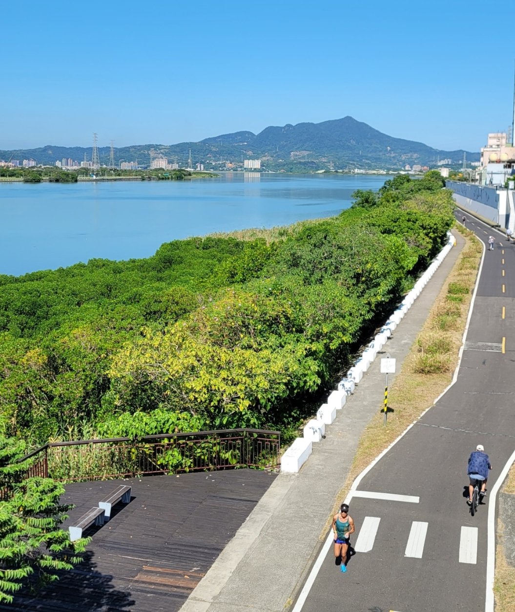 平常我喜歡走路,走路最接地氣,看風景,看人,看老宅,也看歷史文化。今天太陽太大,太曬,決定來騎一下許久未騎的UBike。還好堤防檔住了一片陽光,決定從新月橋開始,沿着大漢溪右岸騎,天氣晴朗,白日高掛,很多人沿著河邊跑步,也有很多人騎車,我羨慕可以跑步跑很久的人,可以到處去跑馬拉松,有機會我想去跑波爾多或羅亞爾河的紅酒馬拉松,一邊跑步,一邊看美景,拜訪酒莊,一邊喝紅酒,這會是怎麼樣的感覺? 我騎到華江橋下,橋下有服務處,也有腳踏車租借,野鳥介紹。慢慢地牽車上橋,之前走過華江橋幾次,但騎Ubike 倒是第一次,橋下有雁鴨公園,小白鷺跟夜鷺是常見的野鳥,泰國八哥這幾年是氾濫了。