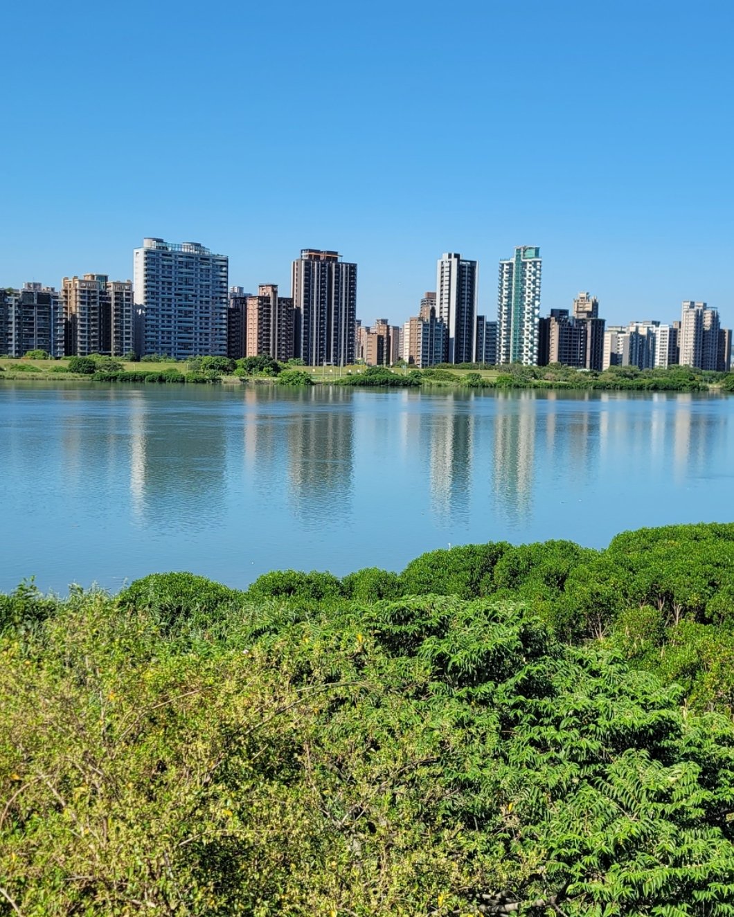大漢溪,淡水河畔,現都規劃的很好,大漢溪畔有濕地,有濕地介紹的看板,也做了一些符合地景的藝術作品,五六月時蓮花開的很漂亮,到現在還有零星的幾株,有點無力了,隨風搖曳。淡水河邊有雁鴨公園,平日假日都是很好的休閒場地,散步,騎車,跑步,賞花,賞鳥,賞風景,放鬆兼具教育意義的好地方。春夏草地開滿了一片黃。蒲公英,兔兒菜,蟛蜞菊是常見的野花,綠色地毯上,恣意的開滿一整片,也是很美。