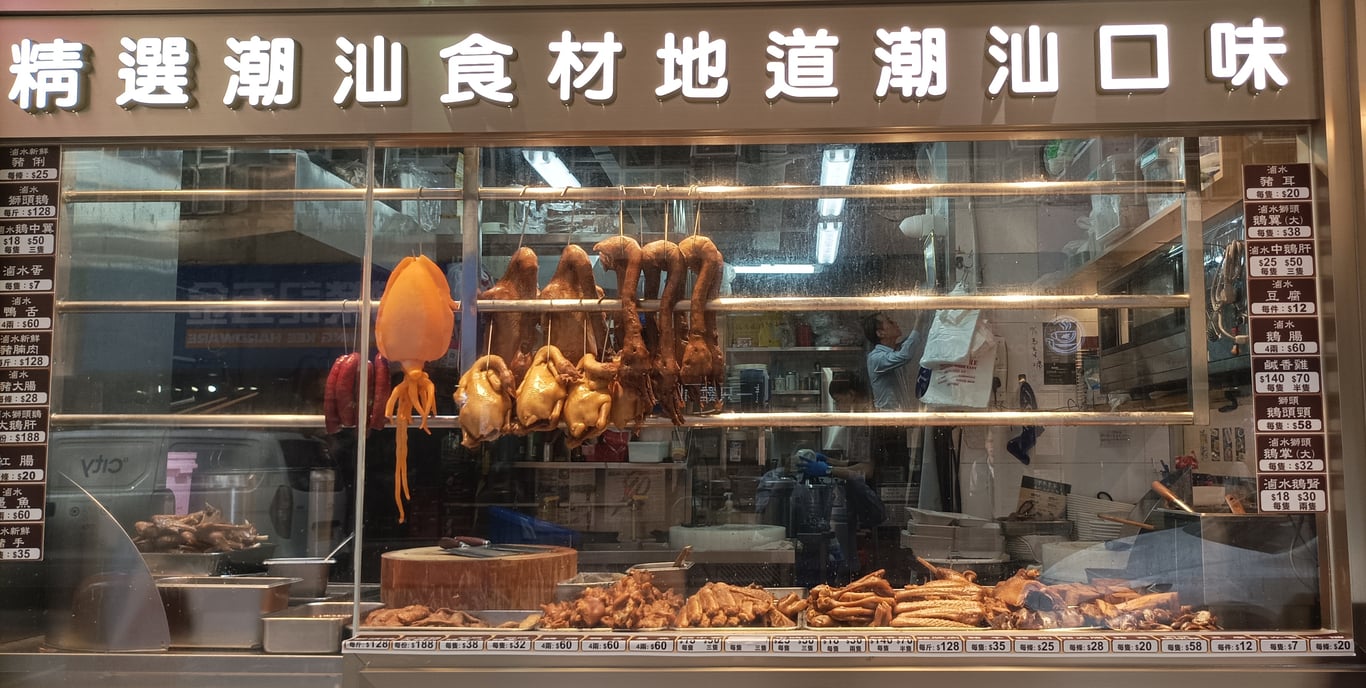昨天下午經過灣仔一家潮州滷水店,看見那家店在做特價,兩個獅頭鵝頭連頸才賣50元,忍不住停下來研究一下。