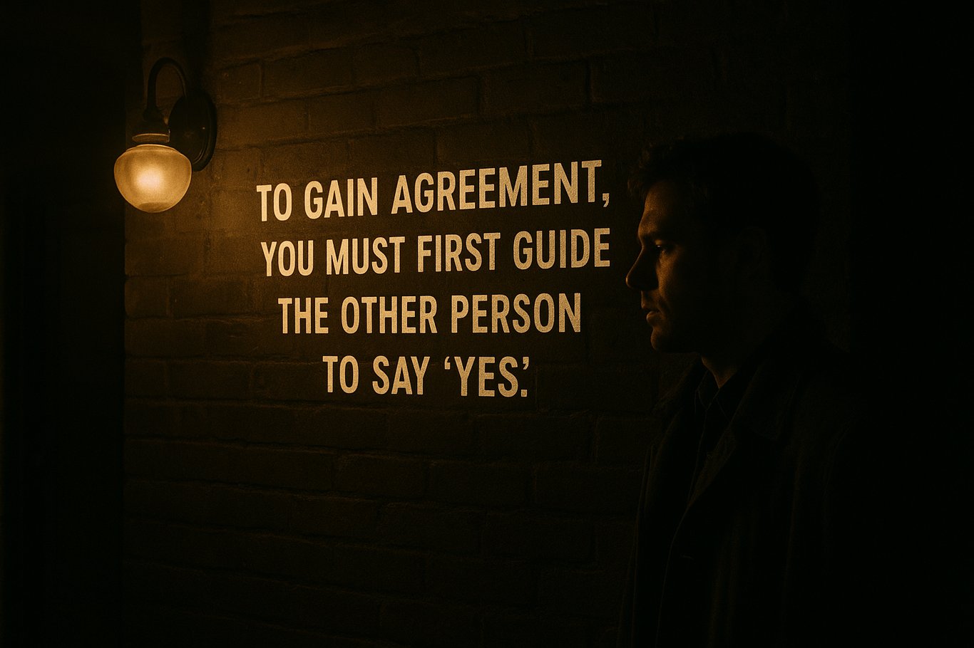 書中提出一個結合心理學的關鍵技巧:讓對方相信,那是他自己的想法。這可視為自我說服(Self-Persuasion)的運用;常見的作法之一,是先累積同意的 Yes-Set 引導。