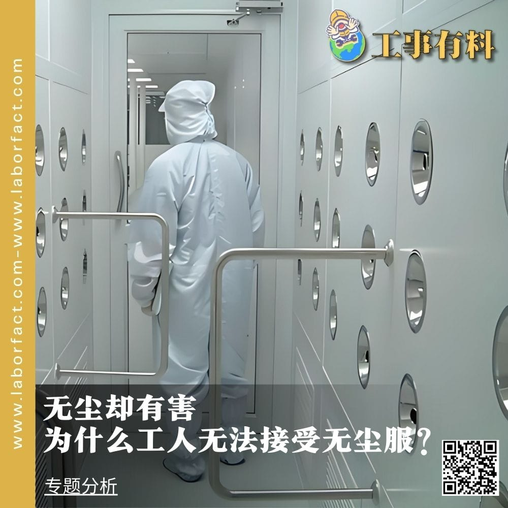 电子、半导体等行业的工厂普遍要求工人穿着无尘服,但这一规定被工人广泛抵触。问题核心在于无尘服恶劣的穿戴体验及其背后严苛的管理制度。无尘服本身密不透风,穿上闷热、出汗,极易引发皮肤病。其次,穿脱流程极其繁琐,上厕所都不方便,有工人坦言“吃坏肚子时根本来不及”。此外,工厂管理混乱,无尘服经常被混穿,存在严重的卫生和交叉感染隐患。对于工厂而言,无尘服旨在保护产品而非工人,其背后是对工人健康的轻视。工人们拒绝的并非是无尘服,而是这种将人异化为“无尘”工具的制度。