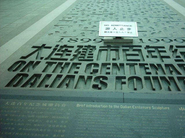 大連的海邊,就像台灣的白沙灣或福隆海水浴場,只是它不是”沙”灘,都是小石子。今天因為是他們上班日,所以沒有活動,但是還是有人頂著涼風來游泳。這裡的水不是很清澈,漁船和遊客共用一片海水。遊客也可以花錢租汽艇,繞海邊的小島,費用依汽艇的馬力算。小島真的小,泳客都能在島與島間游呢!放眼望去,灘上的男性佔大多數,沒仔細找,幾乎看不到女客。我們在灘上散步,偶而蹲下來研究小石子,花花綠綠很適合放在魚缸裡。整個風景區,除了海水浴場也有戶外或室內泳池,也有釣魚場。我們繞了一下,就驅車到星海廣場。