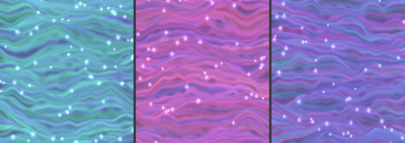 在GPT的幫助下,利用了多層透明度不同的線條堆疊,模仿真實海浪的柔和邊緣,再用極低機率(random( ) < 0.0015)隨機生成閃光點,每個閃光由多層透明同心圓形成漸層光暈,疊加出海在陽光下閃閃發亮的效果,於是以下的圖就出現啦!