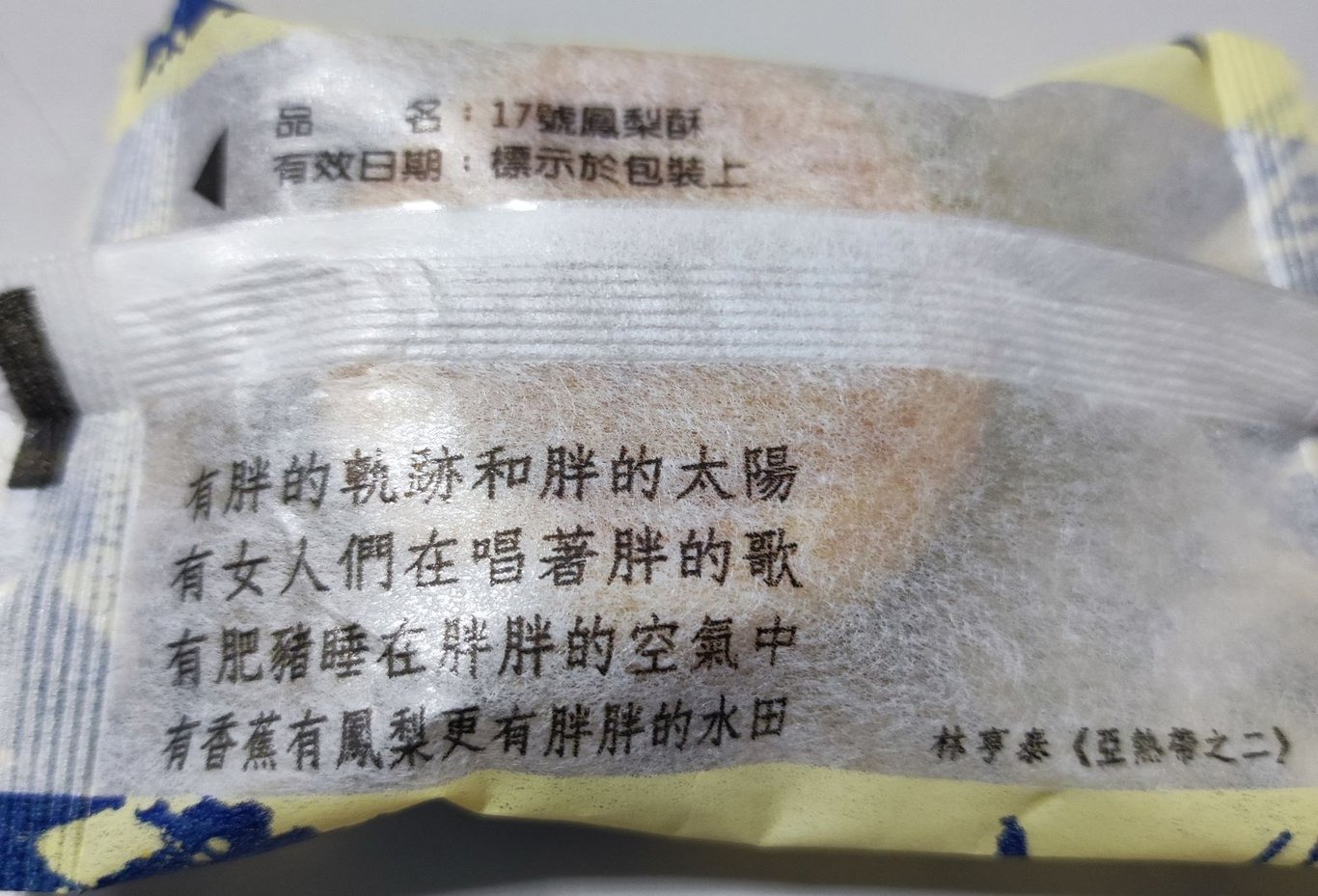 雖說只買花了330元,跟店內其他大戶不能比,但店員說今天是分享日,贈送了我一個17號鳳梨酥。