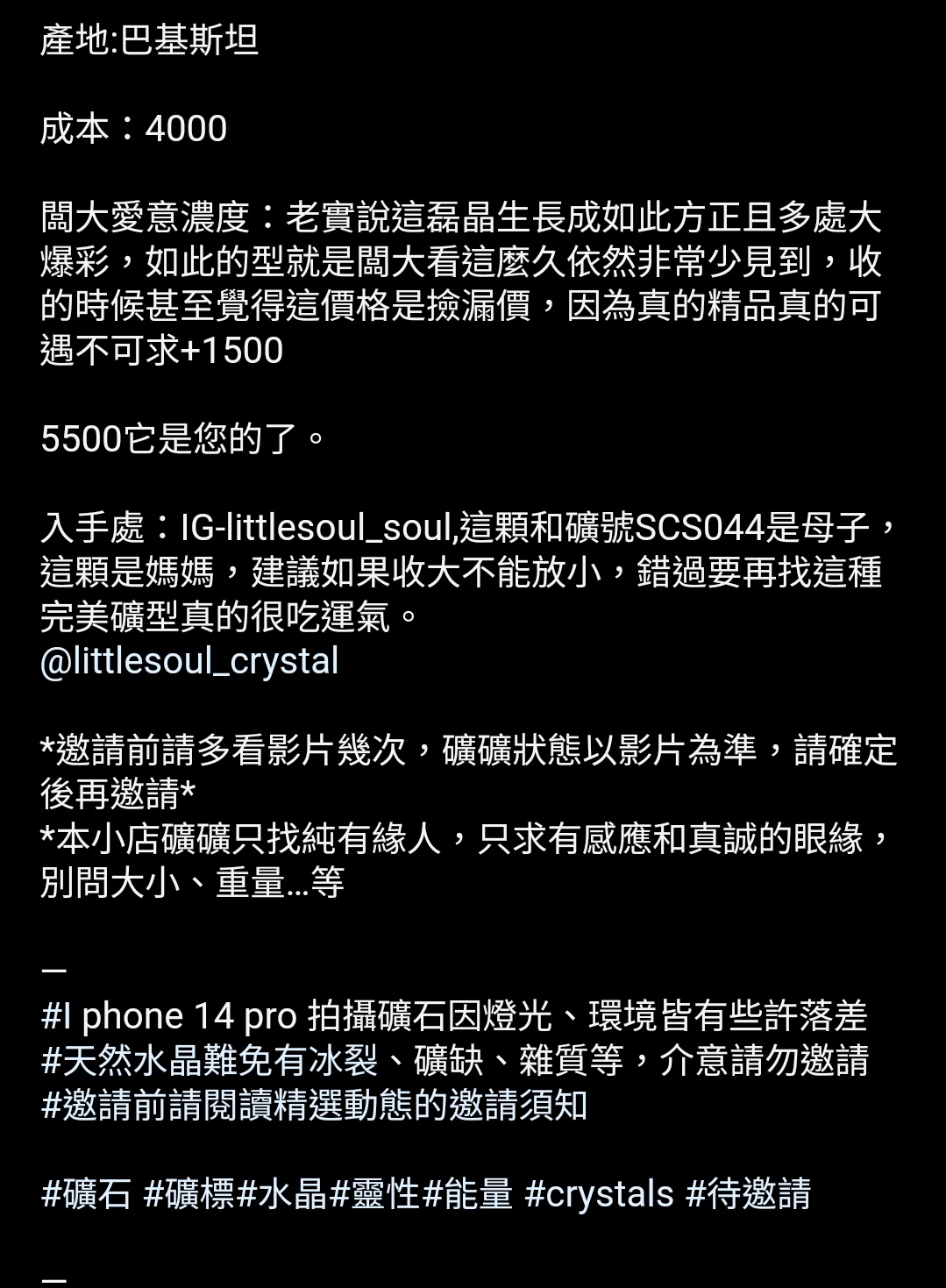 SCS045LIGHT水晶·2023 年 8 月 31 日·IPFS·翻译成简中https://www.instagram.com/p/Cwl4f7US0i6/ 水晶礦物水晶礦石擺件水晶礦石CC BY-NC-ND 4.0 授权建议频道选择希望推荐到的频道(单选)生活事书音影旅・居性别/爱创作・小说时事・趋势身心灵没有适合的频道不参与频道推荐 (文章将出现在「还有」中)下一步喜欢我的作品吗?别忘了给予支持与赞赏,让我知道在创作的路上有你陪伴,一起延续这份热忱!支持作者支持作者LIGHT水晶以前,我倦到要按摩及作嘔提神只是一時,自認識它後,真是180度充滿力量 www.instagram.com/soul.crystal.soul 来自作者相关推荐黑色壐礦石SCS057SCS002-動態
