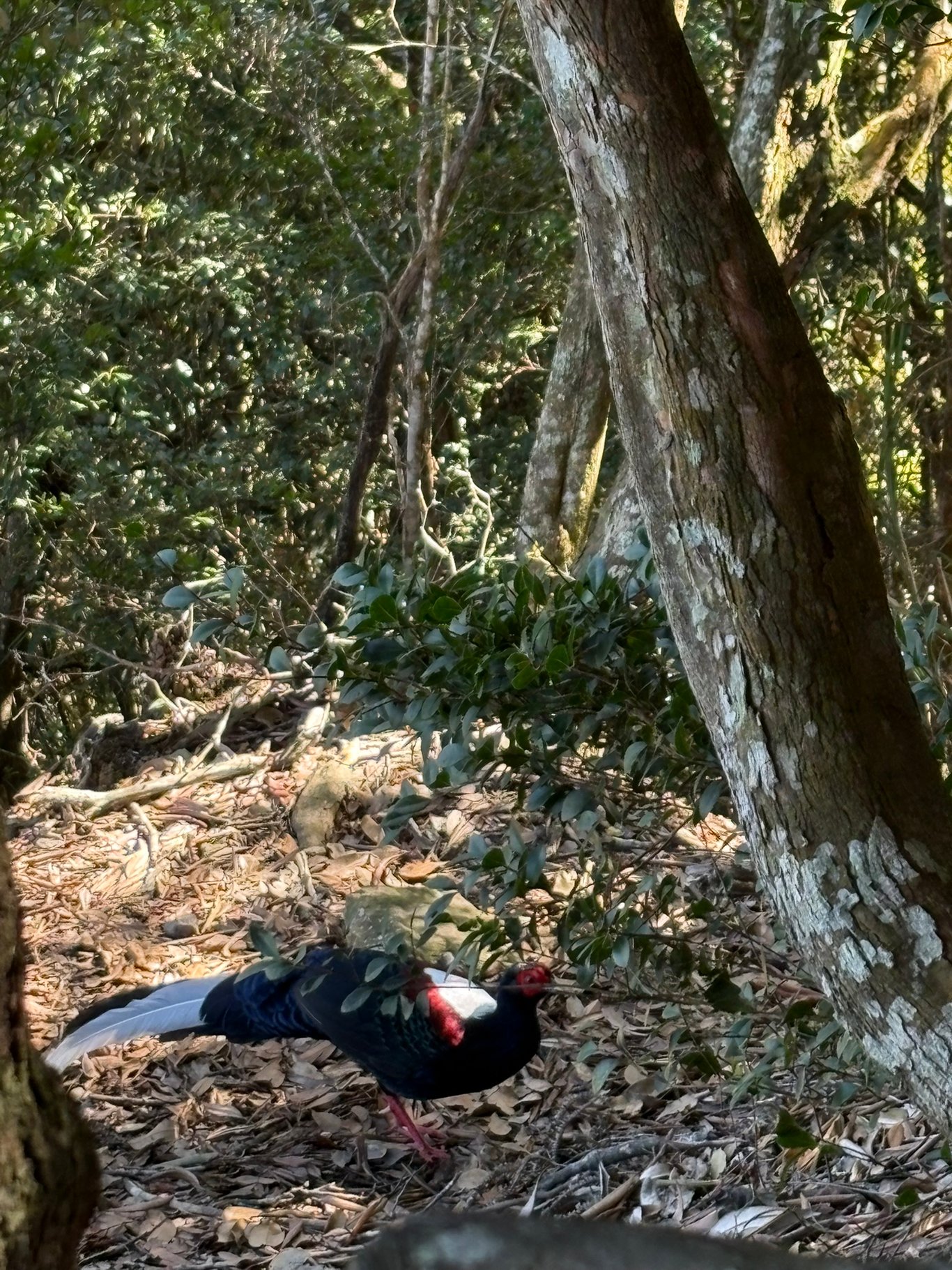 在中午前抵達三角點,開吃泡麵犒賞辛苦的自己,等著水沸騰的時刻遇見了毛色鮮艷飽和的帝雉,和他保持著最安全的距離,欣賞。