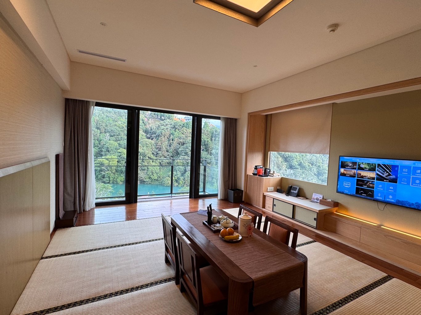 因這次朋友訂的是塔塔米湖景房,所以一進去泡澡是在內部,朋友說有些房型泡澡是可以邊看湖景,而約六點房務人員就會進來幫忙鋪床。