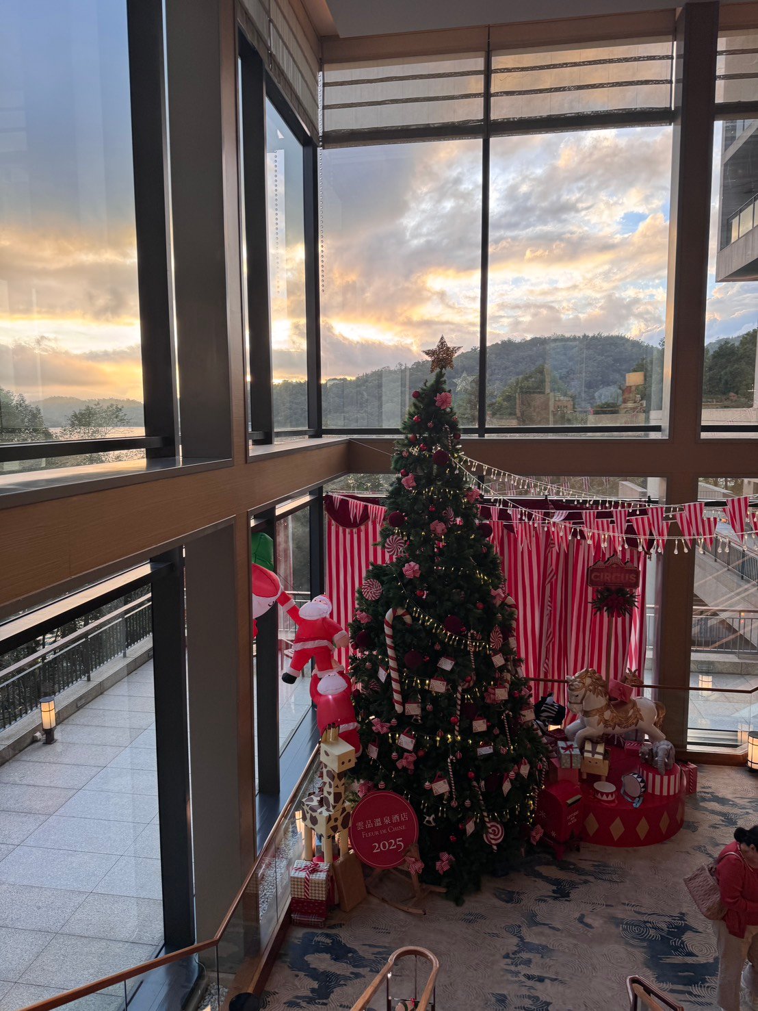 因為我們訂五點的晚餐,所以去餐廳的過程中剛好會看到日落,還有雲品布置的聖誕氣息