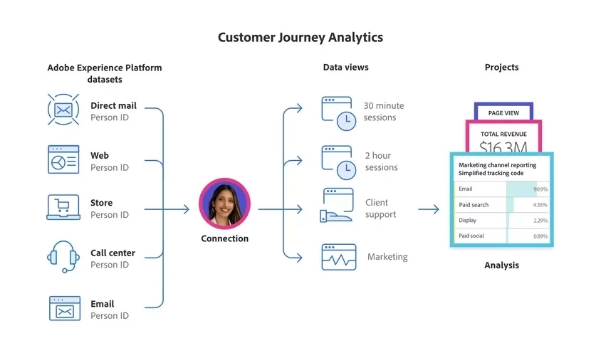 這些問題的關鍵在於「資料整合與關聯性視角」的缺失。Adobe Customer Journey Analytics 正是專為此設計,提供全通路、多裝置的顧客行為軌跡分析能力。