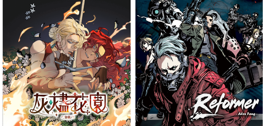 金鼠是受矚目的條漫新星,中世紀奇幻條漫《灰燼花園》是GL商業作,運鏡靈活敘事明快,在寬幅與分鏡方向都受限之下,畫出流暢富張力的打鬥、情感畫面。