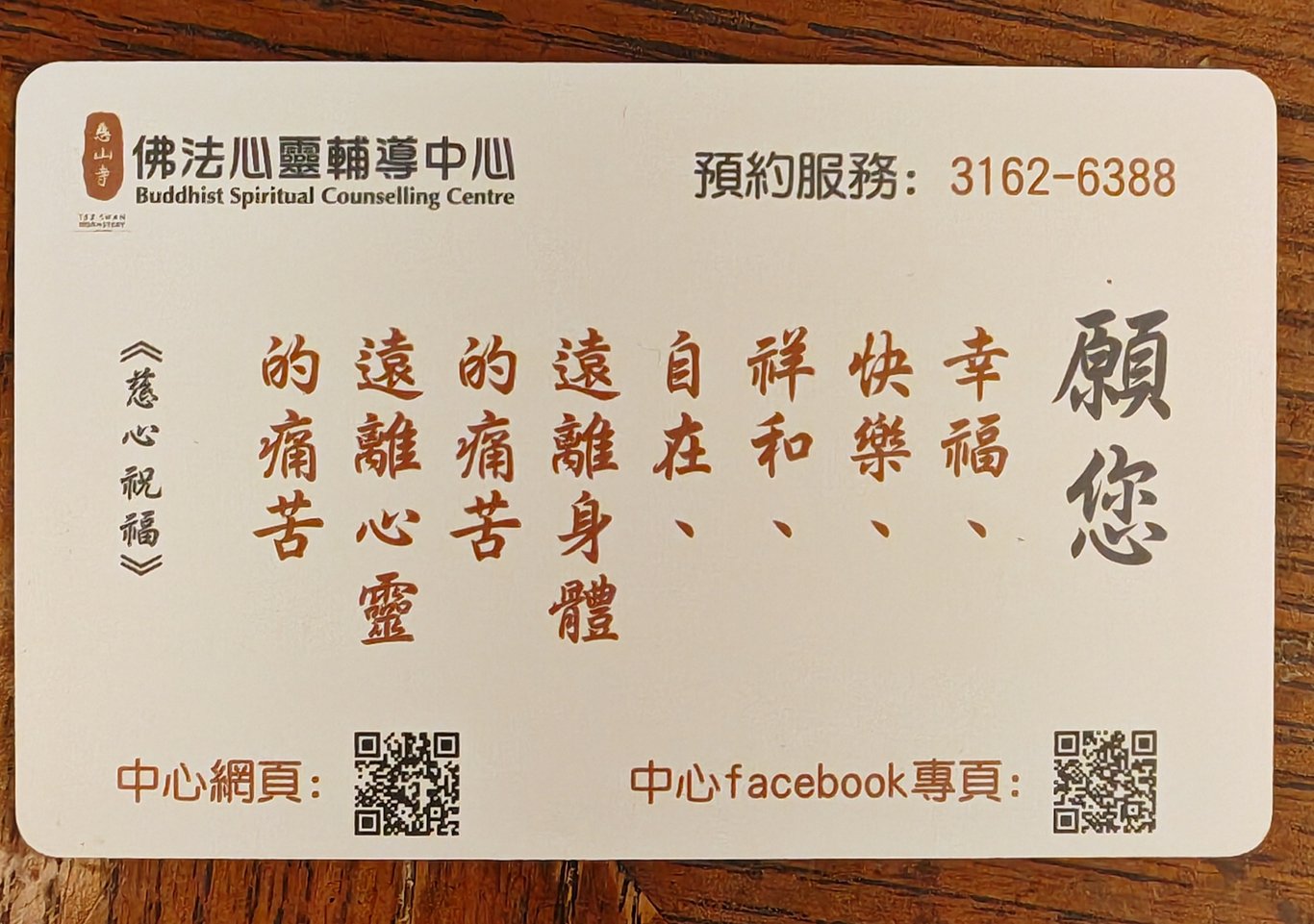 工作人員遞上香,我默站,誦經聲散發的平和,擁我入懷,眼淚缺堤;淚眼中有位女士上前,問我想不想和慈山寺佛法心靈輔導中心社工見面聊聊。