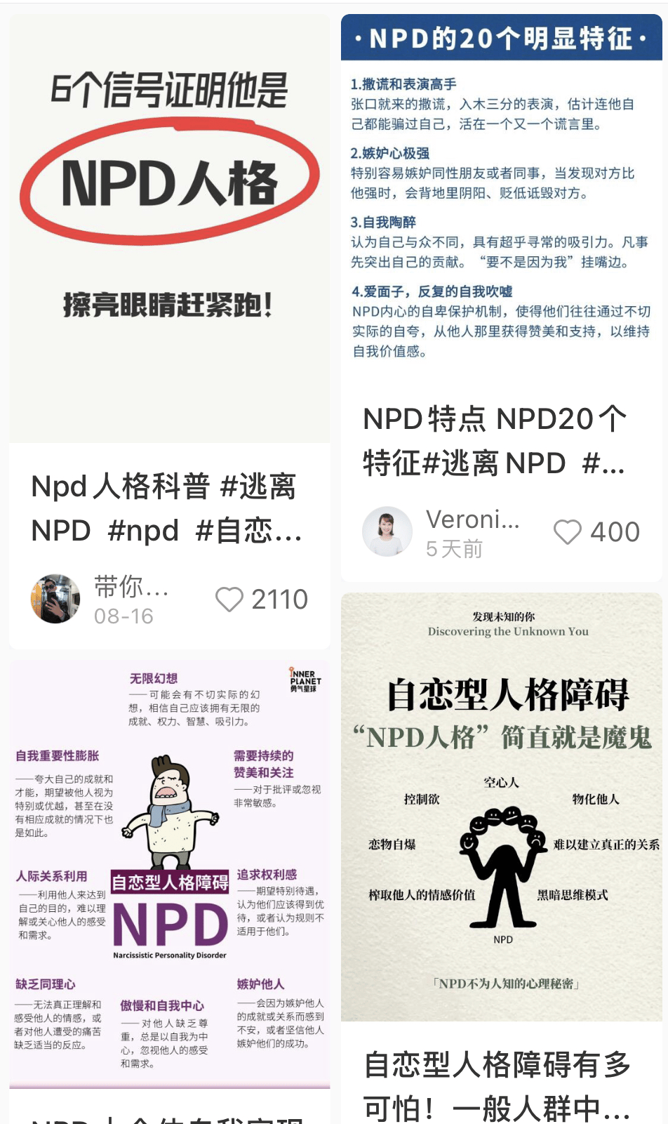 把她们送走后,昨天太太无意中刷到一条短视频,介绍“隐性NPD”,相对比发现,那位朋友完全对应上“隐性NPD”的症状。NPD即Narcissistic Personality Disorder自恋型人格障碍,是一种终生无法被治愈的精神疾病。“隐性NPD”有很多不同的表现,其中有两条非常典型的行为表现,第一,她们会故意赠送明显低于你消费水平或带有“施舍感”的廉价品,潜台词是“你只配得上这种东西”或“你需要我的救济”;哪怕礼物廉价,他们也会极力强调自己“挑选时的辛苦”或“心意最重”,如果你表现出不满意,他们会迅速扮演“受伤的受害者”,指责你虚荣、不识好歹。我太太看到这条时惊呼太符合了,说那位朋友临走时,把她们带的一次性拖鞋留在房间里,对我太太说:这些拖鞋你们还可以接着用,别浪费了。真让人哭笑不得。第二,由于内心极度缺乏安全感且渴望掌控,隐性NPD会不断进行隐秘的测试,以确认你是否完全受其摆布,比如通过提出一些细小但不合理的请求,观察你会不会拒绝。如果你妥协了,他们会变本加厉(让我深夜开车去车站接她们)。NPD人格是无法治愈的,因为他们这种人格的产生就是因为形成否认和投射作为核心防御机制,无论外界对他们有什么负面评价,他们都会否认并认为问题出在别人身上,不会有反省机制,也就不会承认自己有人格缺陷。对待NPD患者的唯一正确方式就是远离,不要试图拯救。现在回想起来,在我接触过的人当中,有不少人有相似的行为表现,最终都和他们渐行渐远,看来也是冥冥中自有因由。我把这些经历写下来,更主要的目的是能帮助被NPD困扰的朋友们,要果断远离NPD,更多关注自我健康。