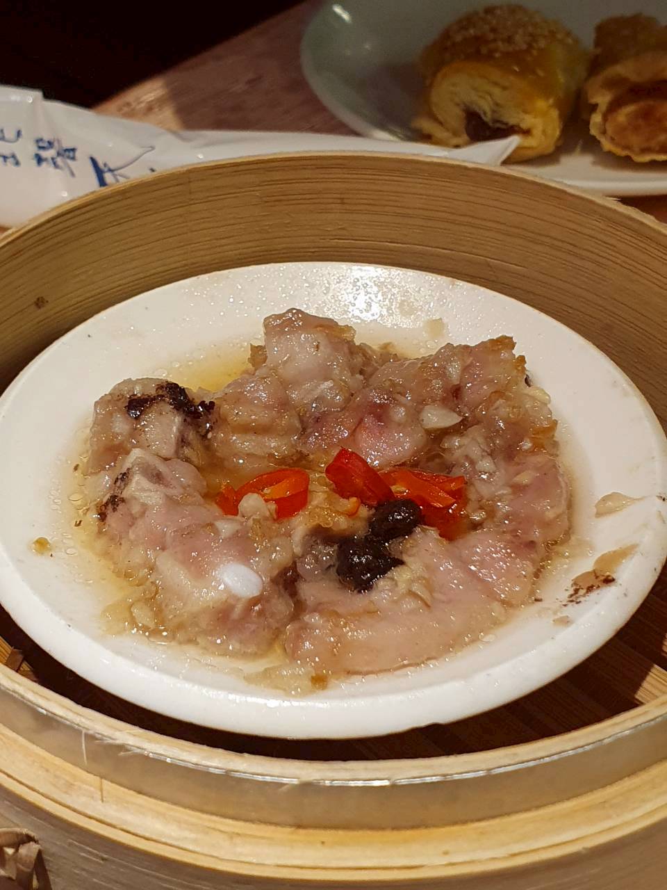 主餐我們點了白菜肉絲炒年糕,六個港點我們選了鮮蝦腐皮捲、豉椒蒸排骨、蜜汁叉燒酥、魚子燒賣皇、奶黃流沙包跟晶瑩蝦餃皇