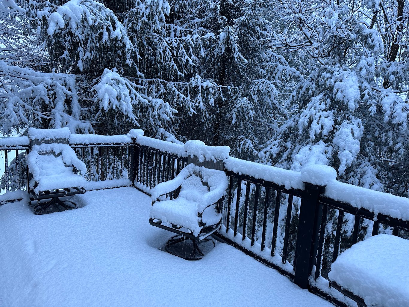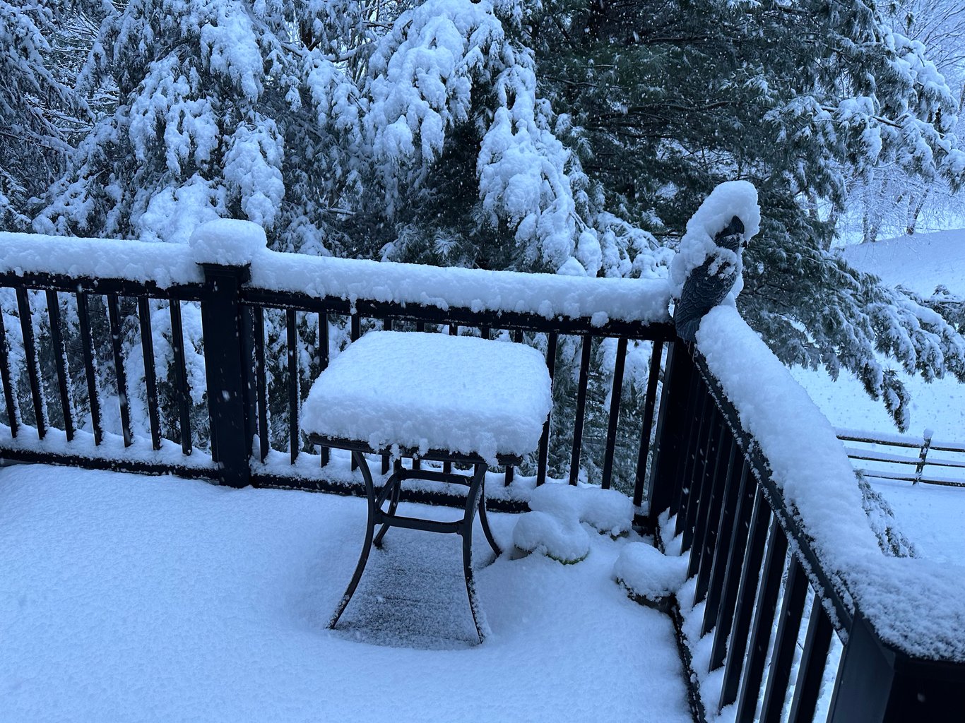 我看我们后院的桌子上的积雪,至少是5-6 英寸。某生过来一看,说还真是天气预报中的上限,真的有6 英寸之多。