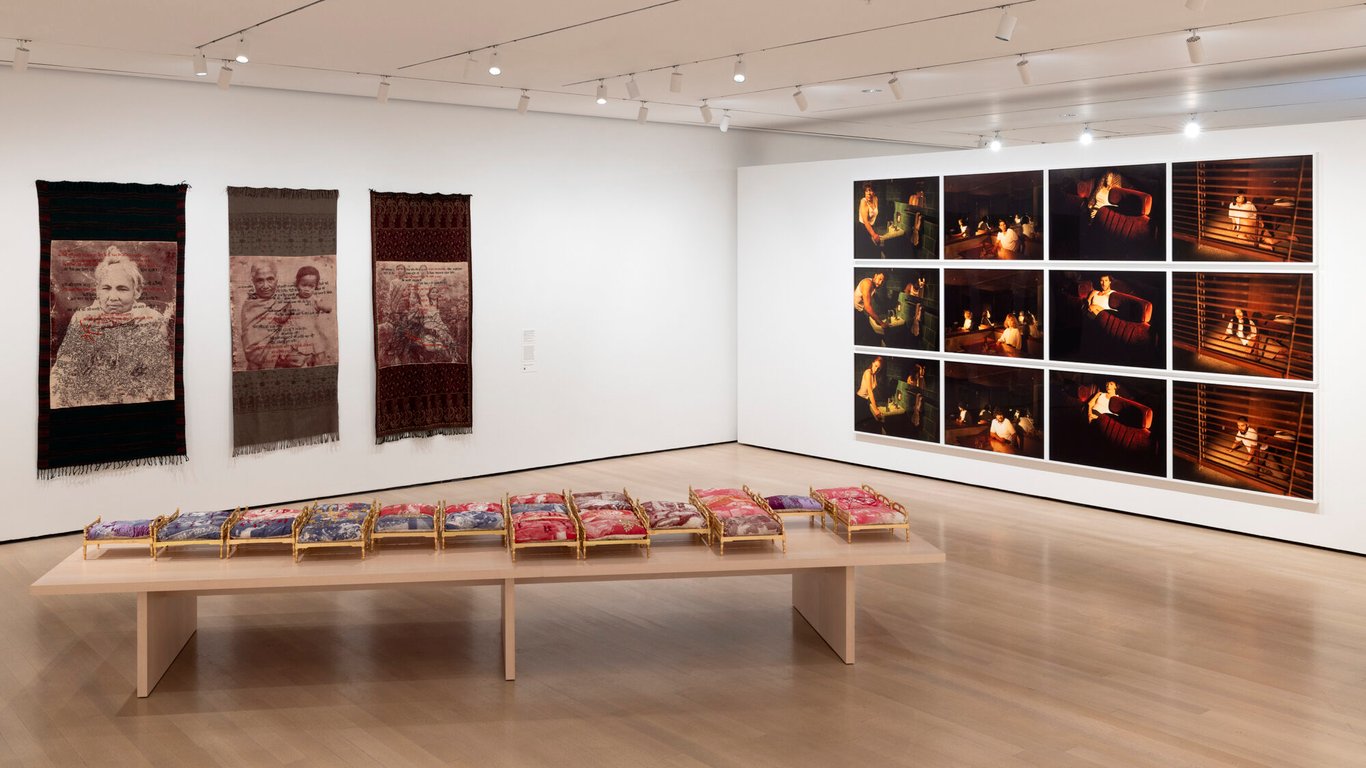 這樣的命題若處理得當,足以揭開當代社會的倫理裂痕——即道德與情感的斷裂邊界——與社會邊緣的張力;但在 MoMA 的語境裡,它被寫成一種溫柔的進步口號——「在動盪的時代重新想像親屬關係與歸屬的線」,表面包容,實則規範觀看的方式。就像福柯在《話語的秩序》中所述,話語不僅描述現實,還決定了什麼能被看見;布迪厄亦指出,這樣的語言作為符號資本,建構了藝術的合法性框架。