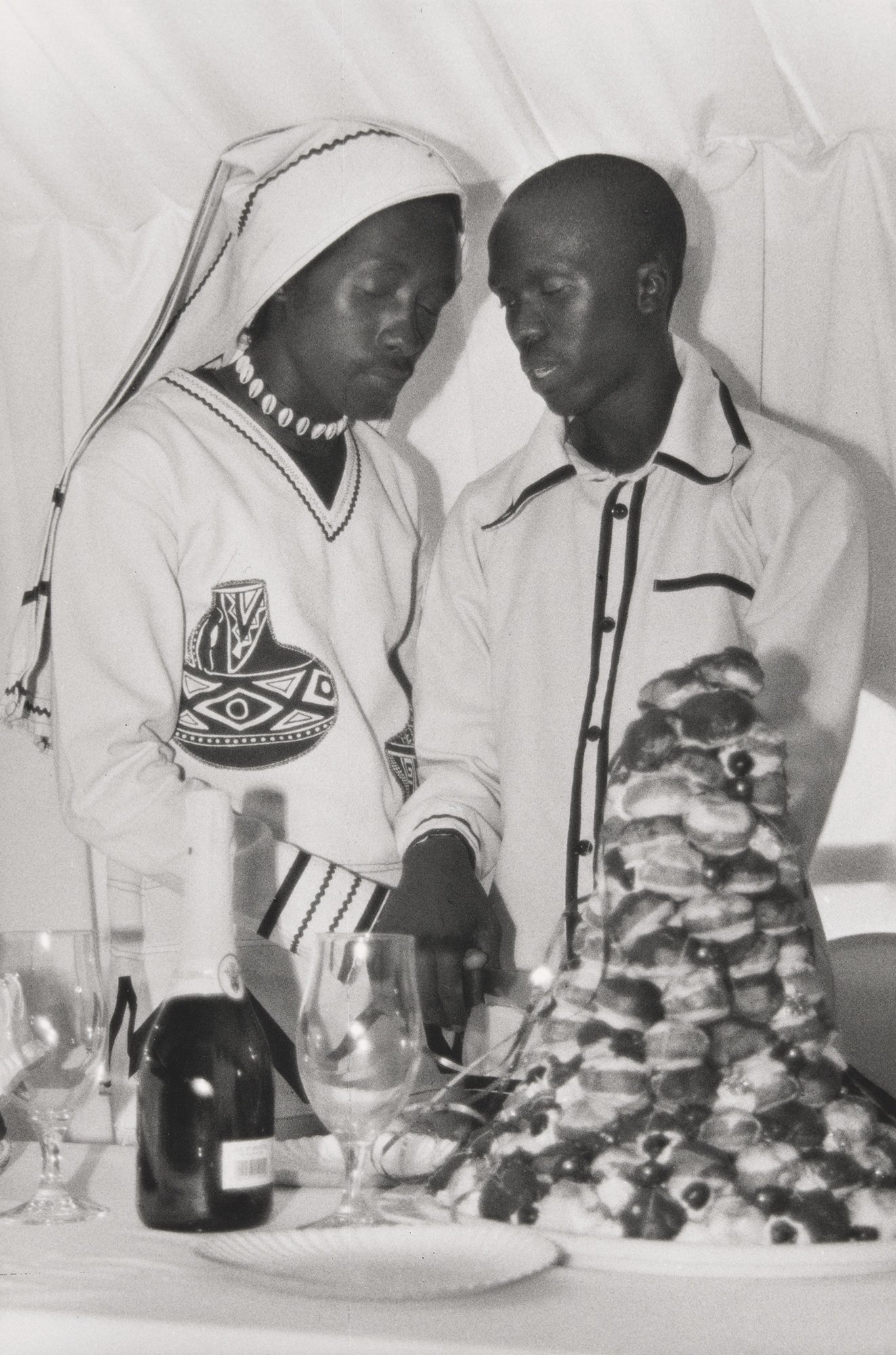 姆蘭格尼拍攝黑人婚禮《Isivumelwano》,展牆引用他一句話:「愛是把文化從壓迫帶向喜悅的鑰匙。」太漂亮,也太可預測。照片裡其實還有疲憊、尷尬、階層壓力——但這些都被語言濾掉,只剩「愛」。