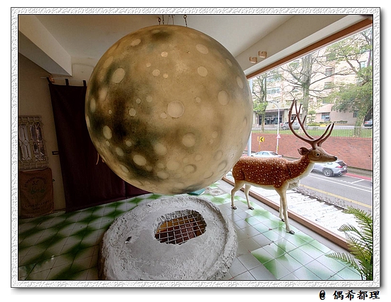路過時被落地窗裡的巨大月亮和梅花鹿吸引而來,店內主要販售單品咖啡、各類飲品、甜點與輕食。