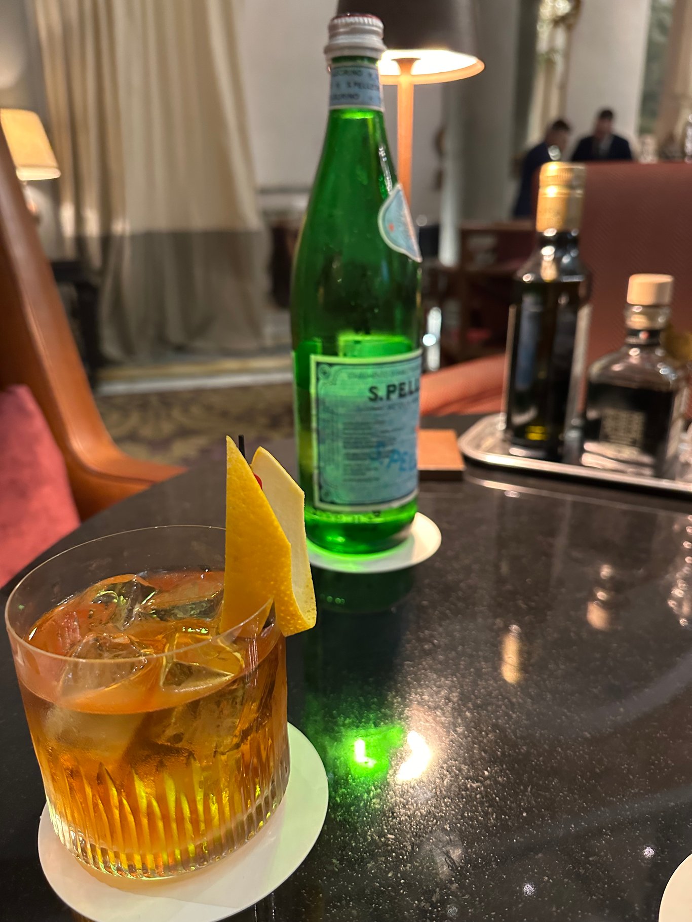 某生点了他喜欢的old fashion,他喝了觉得很不错。这么好的酒店,不用去想就知道他们的酒水一定不错啦。免费的酒水是香槟,我喝了几口就按惯例全部给了某生喝。某生喝了还不过瘾,又点了一杯old fashion 来喝。自从keto 以来,我们基本上没有外出去吃饭。在去意大利之前,某生就说去意大利就全部破戒,所以,酒也就不忌了。