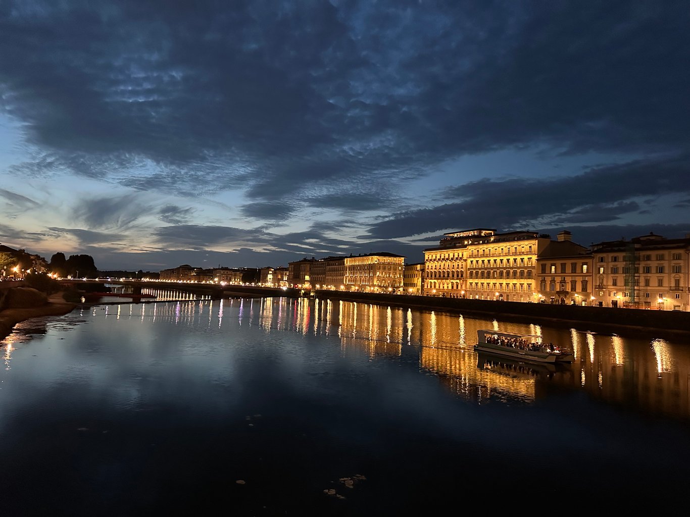 酒足饭饱后也近黄昏,我跟某生说我们到河边走走来消食。走出来,天还蒙蒙亮。伴随着凉爽的晚风,在河边拍出的照片特别美丽。我们对佛罗伦萨比罗马更喜欢。