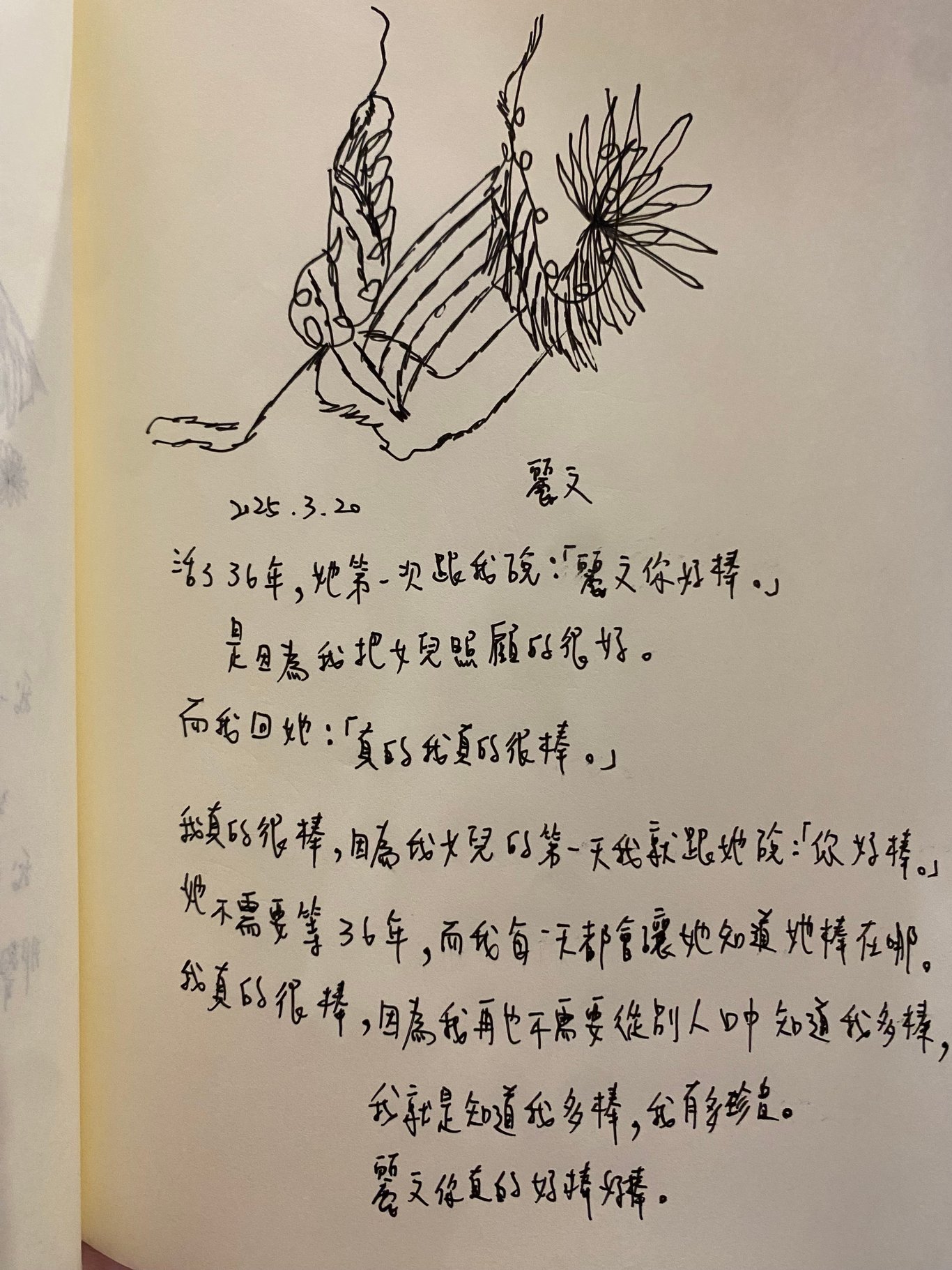 但這個最愛罵她的女兒卻常常想念她,已經過世三年,常常發著回顧的照片想念她的媽媽,那個她最愛拿著嘴劈裡啪啦念個不停的媽媽,人很奇怪,人在的時候無法溫柔,人不在的時候又拼命的想念,人在的時候爭吵不休,什麼傷人的話拼命說,人不在的時候才拼命的說起他的好,是不是死亡就像一個透明花瓶,死去的靈魂都只會被插上美好的花。