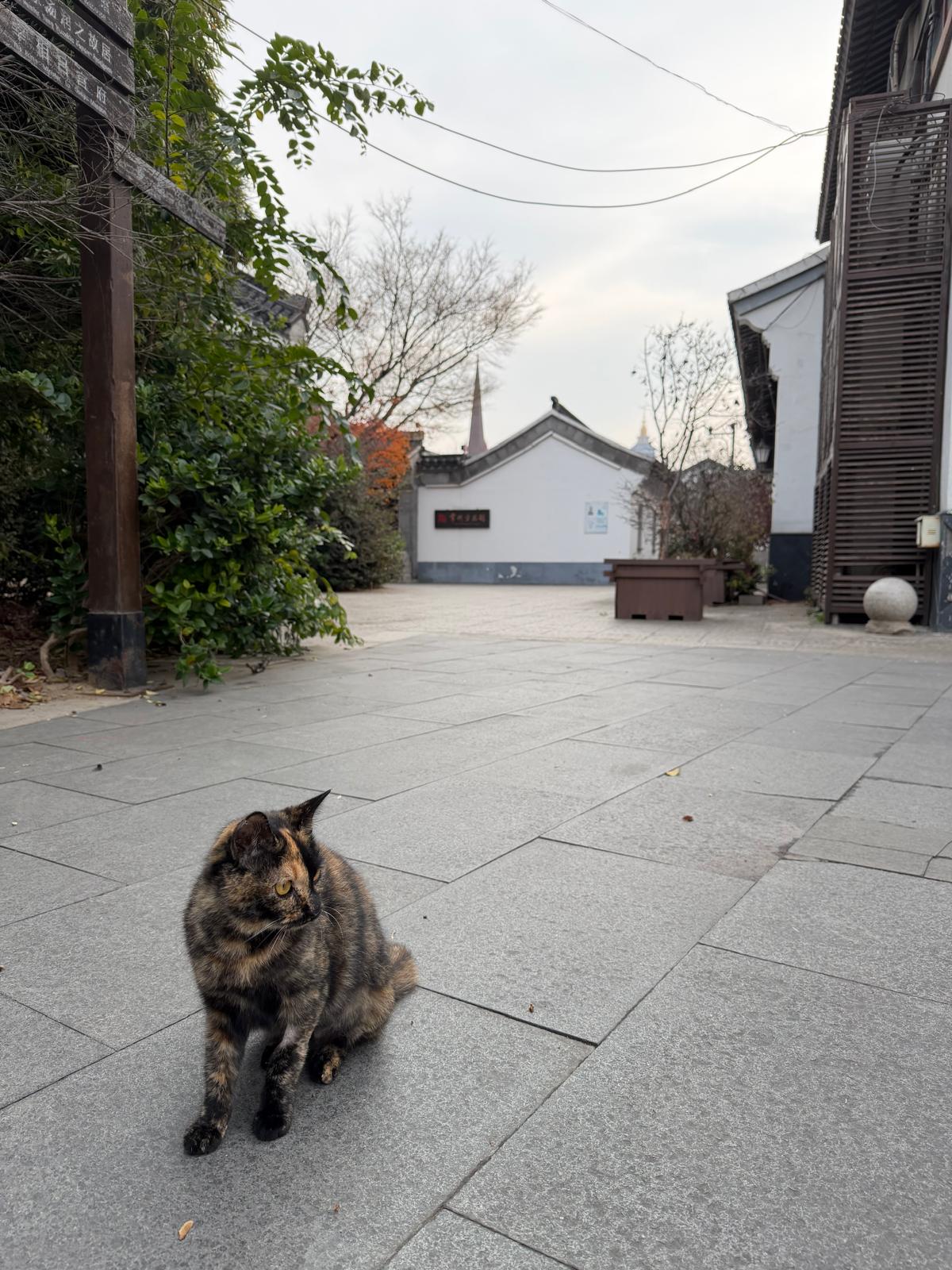 本來,走到常州方志館前,目的是拍一張集江南、佛教(天寧寺)、基督教(常州市基督教堂)建築特色的照片。怎料,正當我舉起電話之際,館內的一頭小花貓就走了出來。結果,牠成了這張組圖的主角。及後,牠就慢慢溜回館內,我也隨牠而進入方志館參觀。期間,那頭貓一直在我腳下穿插,有時還蹭我的腳,大抵是以為我有貓條。結果,館內的資料沒怎麼細看,貓的寫真卻拍了不少。離開方志館前,我還特意問了保安﹕「這頭貓有沒有名字?」保安道﹕「也沒有甚麼名字,都叫小喵。」「小貓本來沒名的,問的人多了,也便有了名。」