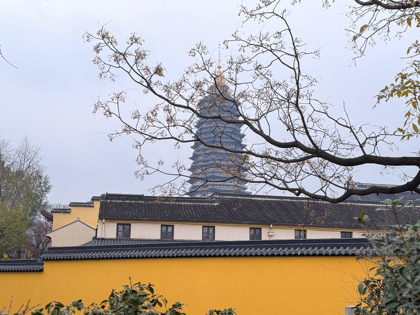 走到天寧寺外,幾位我本以為是在享受午後閒暇的老人走來,在我耳邊說﹕「要算命嗎?」坦白說,他們是有一套話術,其中一位就說過﹕「我看你的臉色,要算呀。」可是,我不曾覺得他有正面看過我的臉,也不太相信這一套,就以﹕「我聽不懂。」推搪。他竟接著說﹕「聽不懂,我可以慢慢講呀。」我只好加快腳步走入天寧寺內。走到寺內,如同走到內地不同寺廟的感覺一樣,就是感覺那些牆都刷得特別新淨。黃牆黑瓦,將俗世紅塵隔開。至於那座十三層高的天寧寶塔,來都來了,也該走上去看一看。然而,剛巧我在佛塔頂層俯瞰常州時,手機震了一震,是工作相關的訊息。結果,就在佛寺內,花了數分鐘,處理了塵世之事。道,我是沒有悟出來的。但在那一刻,該做的就要做。