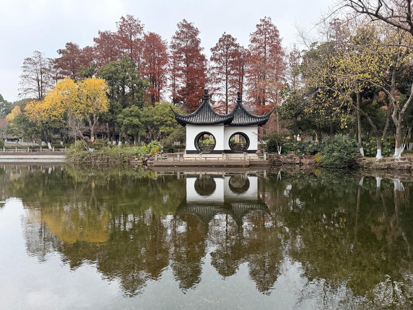 離開天寧寺,我走到旁邊的紅梅公園。因為鞠婧禕,先買一杯滬上阿姨果茶暖身。紅梅公園建於1958年,公園的佈局談不上是傳統的江南園林,只能說是有江南建築的園林。但我並不介意這點,一來是已經遊過不少江南園林,二來是要珍惜跟學會欣賞眼前所見的公園,即使屋苑、屋邨下的公園也是居民生活的一部份。也不管園內的亭台樓閣是不是古蹟,因為園林這玩意,包括假山水池,本來就充滿人為因素。只不過,常州那天總是灰灰濛濛,日落西山後,公園更似被一塊黑幕籠罩著。在公園遊走,眼見那些陪伴閨蜜打卡的阿姨,跟看準時機,在幽靜的公園裡談情的情侶,冷風一吹,才驚覺我就是那個「多餘的人」。