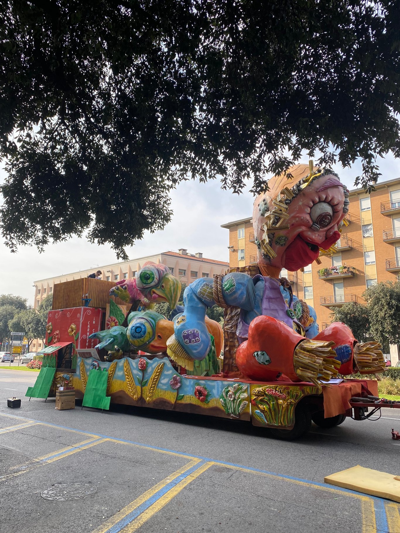 飽到十一點,一起床想到飯店早餐肚子還是飽,吃了一點蛋跟香腸,就不敢再多吃了,靠近大街的路上,有很多大型花車,花車上滿是奇特的動物人偶,誇張造型的吸血鬼還有雞,花車排排站,感覺今天有場遊行。