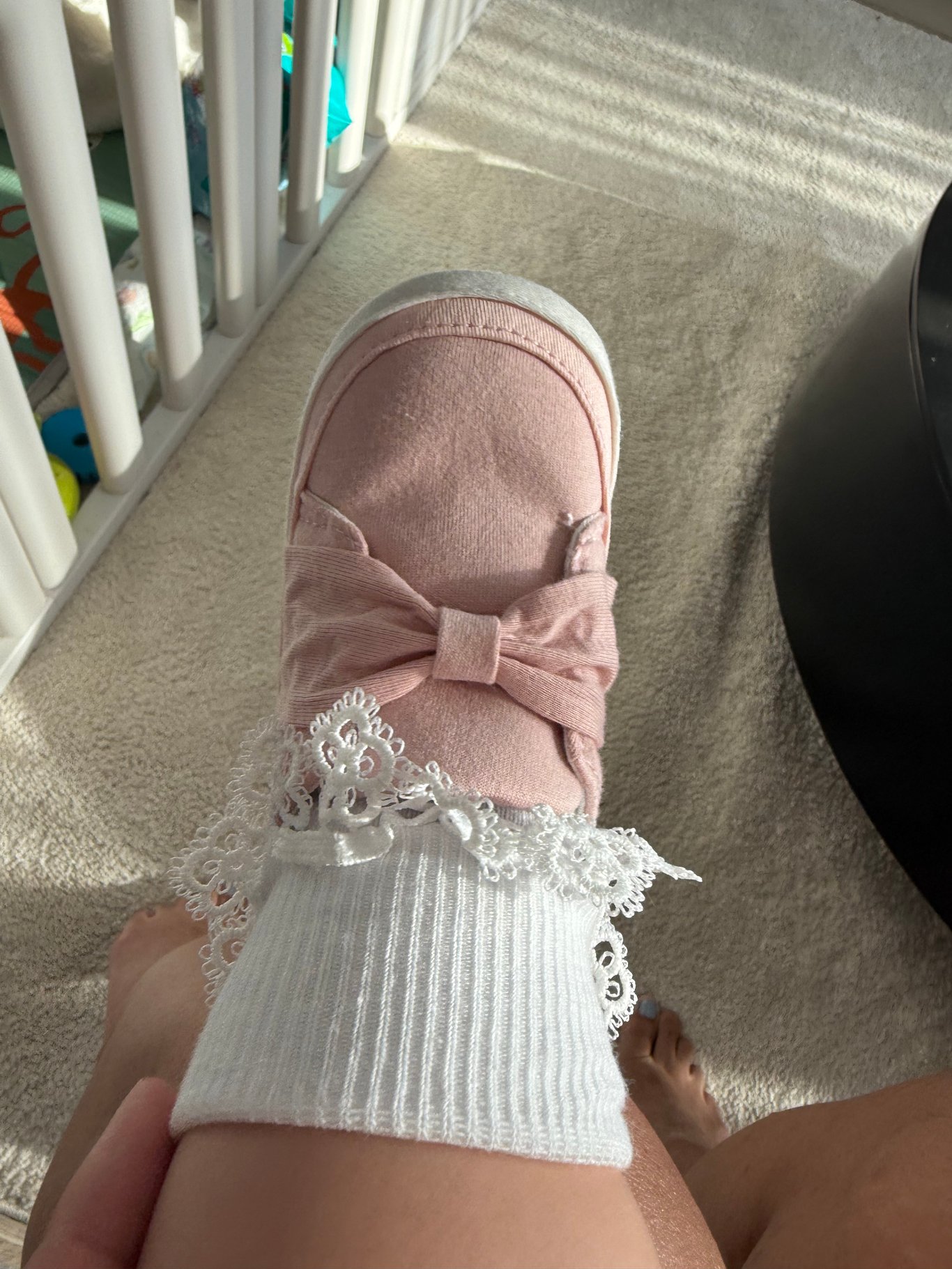 吃完飯,我們走走逛逛,幫女兒買了一雙可愛的鞋子還有蕾絲襪,女兒死不睡,我們兩個人好累但努力幫她找尺寸適合的鞋子。