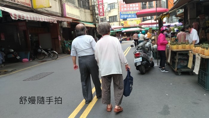 又有幾次去菜市場時,再遇到老先生和老太太手牽手慢慢走著,