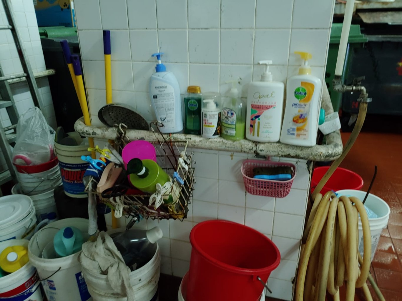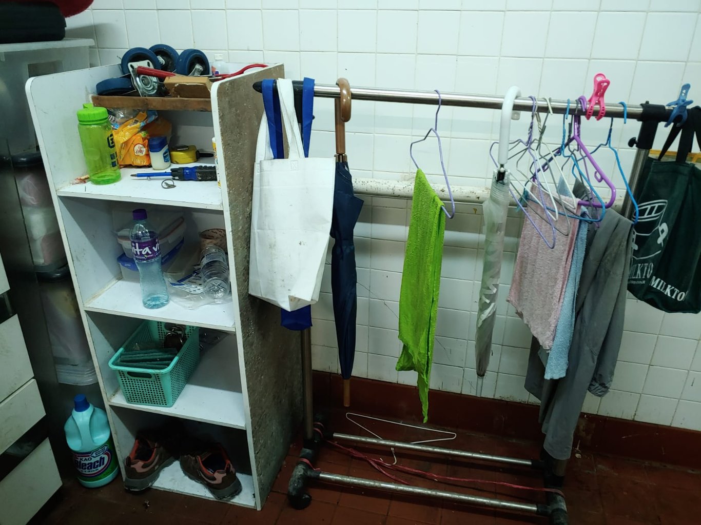 大家可能都會見過,屋邨屋苑的垃圾房,除了垃圾及垃圾車,通常都會擺放一些清潔工具及衣物裝備,例如水鞋、手套、工衣、替換衣物。有時候,清潔工人甚至會主動做一些廢物回收。這些空間使用方式,只要沒有影響清潔服務及職業安全,本來十分平常。