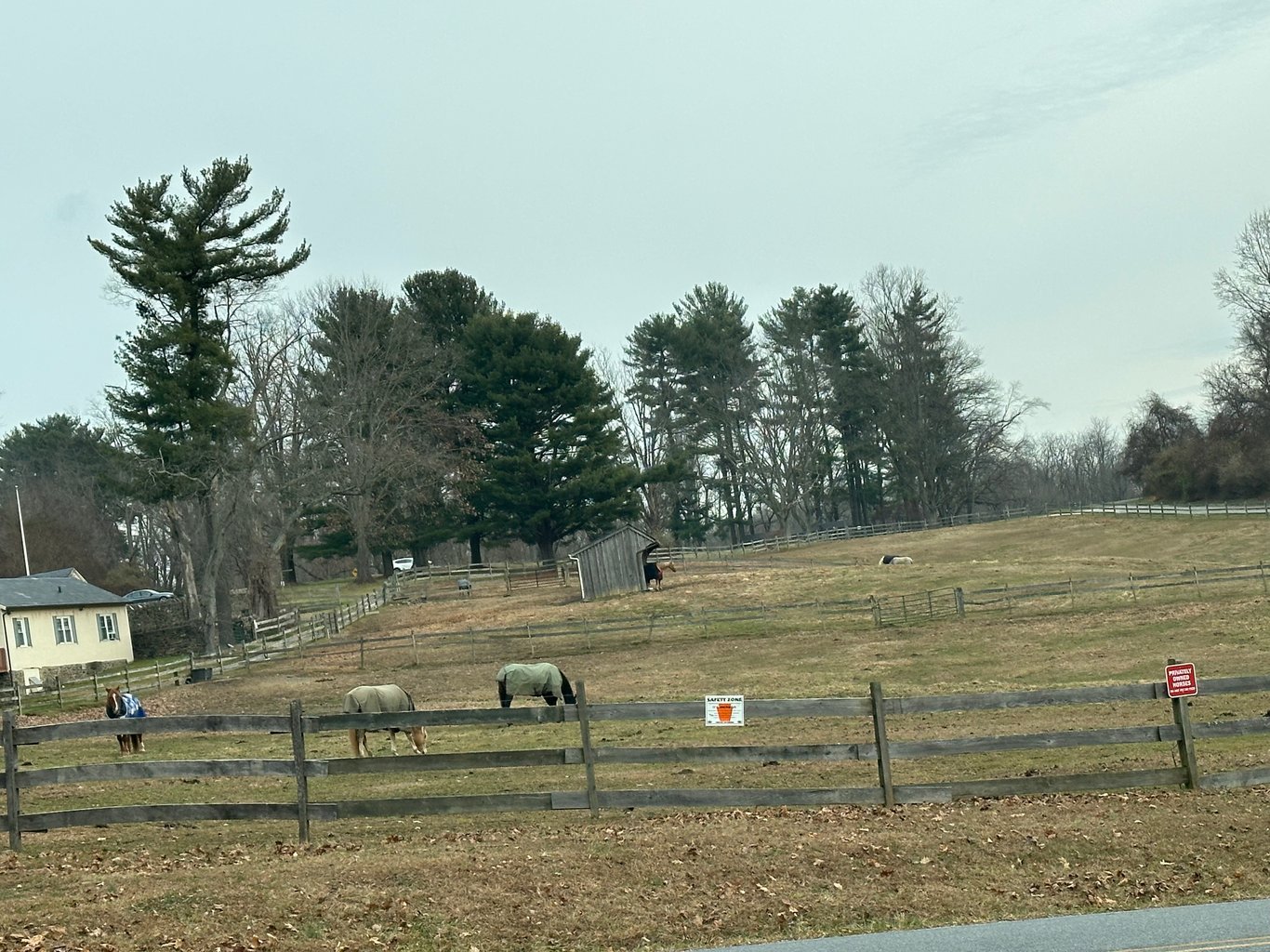 (天冷,连马儿都穿上外套了)