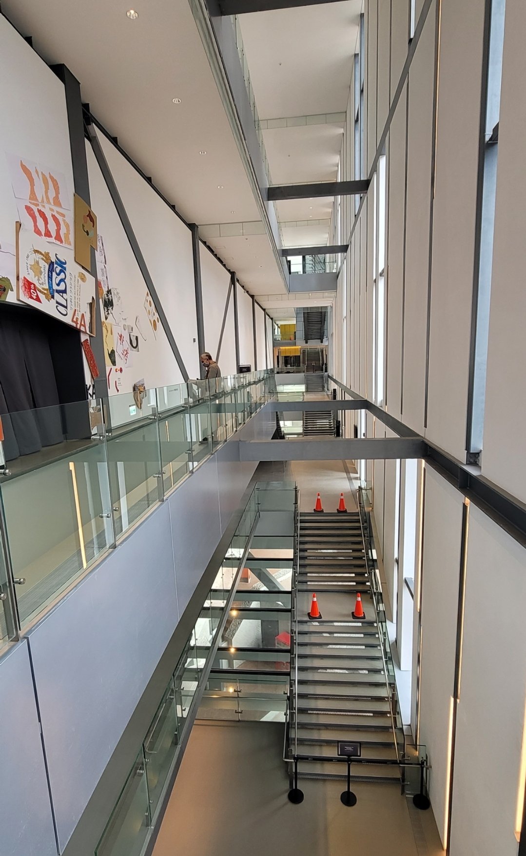 一樓是開放空間及販賣小店,文創商品及咖啡廳等。展覽廳主要是放在地下一樓跟二樓以上的空間。目前剛好是換展期間,只有地下一樓兩個展覽廳,二樓部分及四樓一個展廳有展覽。