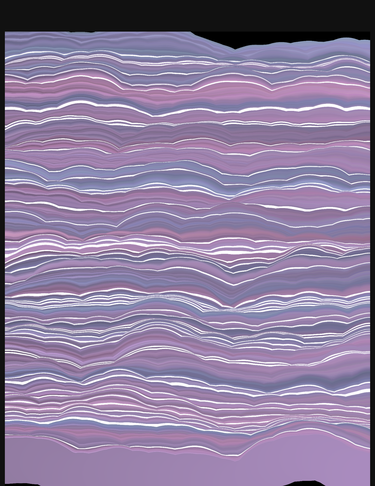 老師今天教我們用noise畫山,首先是一個圓,再用圓畫出線,然後用noise調整大小和線的彎曲程度,接者將線用noise作堆疊,然後用隨機選個主色調,再用noise調整線條的漸層色。