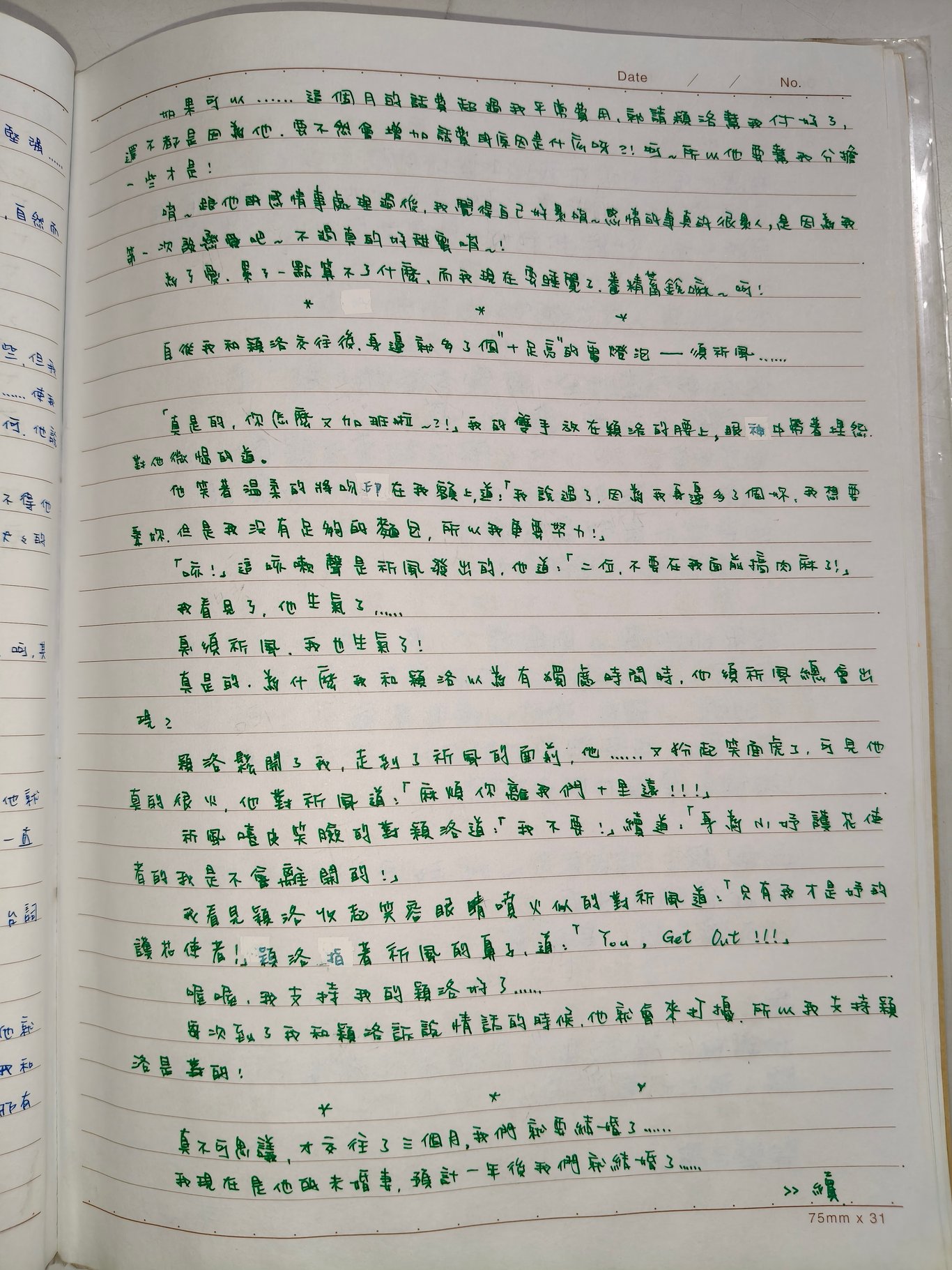不會吧!老天爺不會那麼愛開玩笑,讓我同時喜歡上兩個人吧?吼!我不想那麼花心,我不當劈腿族的,我骨頭硬,劈腿,我的腳腳會痛耶!我不要啦!上帝爸爸,別整我呀!