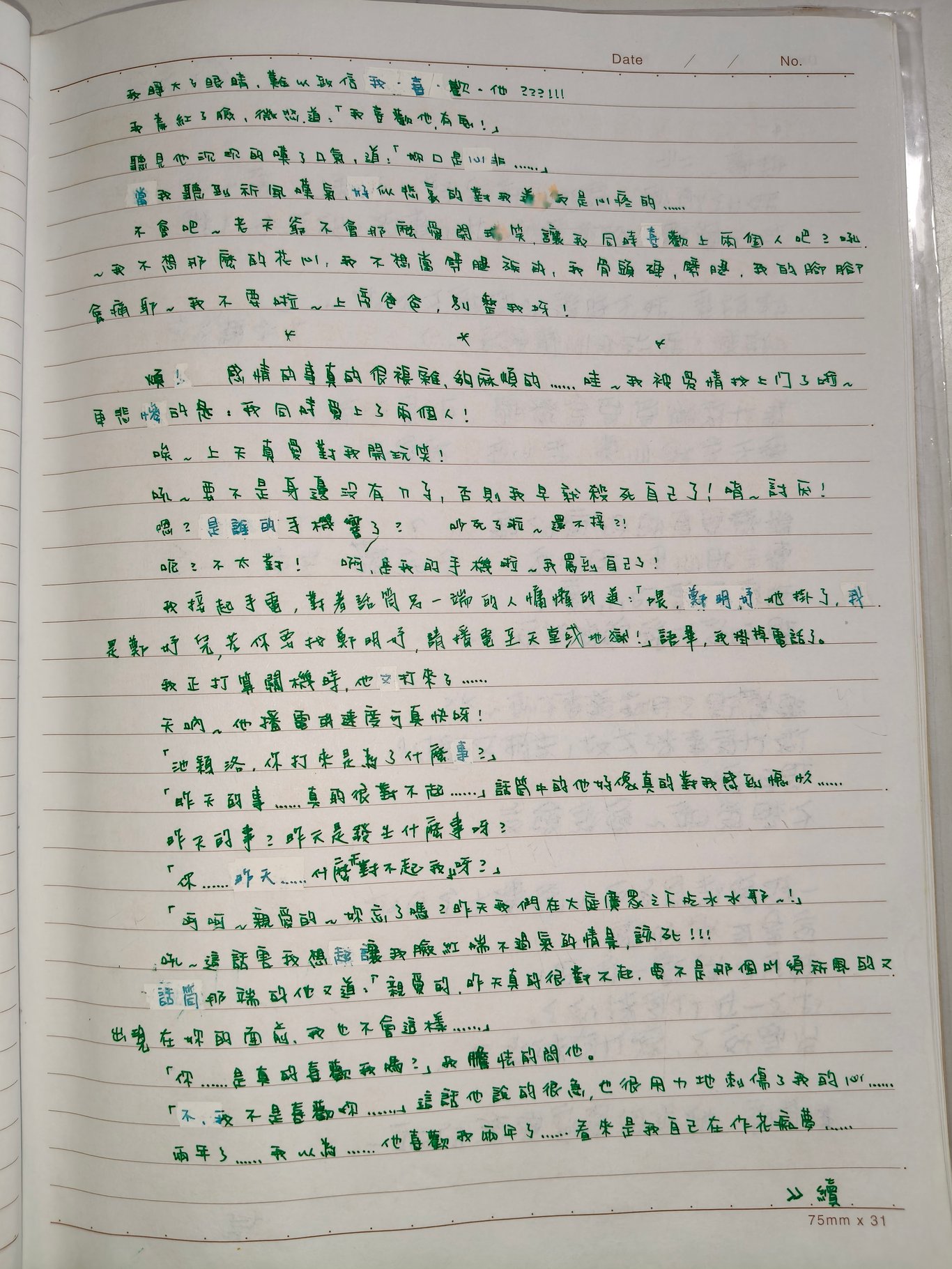 我接起電話,對著話筒另一端的人慵懶地道:「喂,鄭明妤她掛了,我是鄭妤兒,若你要找鄭明妤,請撥電至天堂或地獄!」語畢,我掛斷電話了。